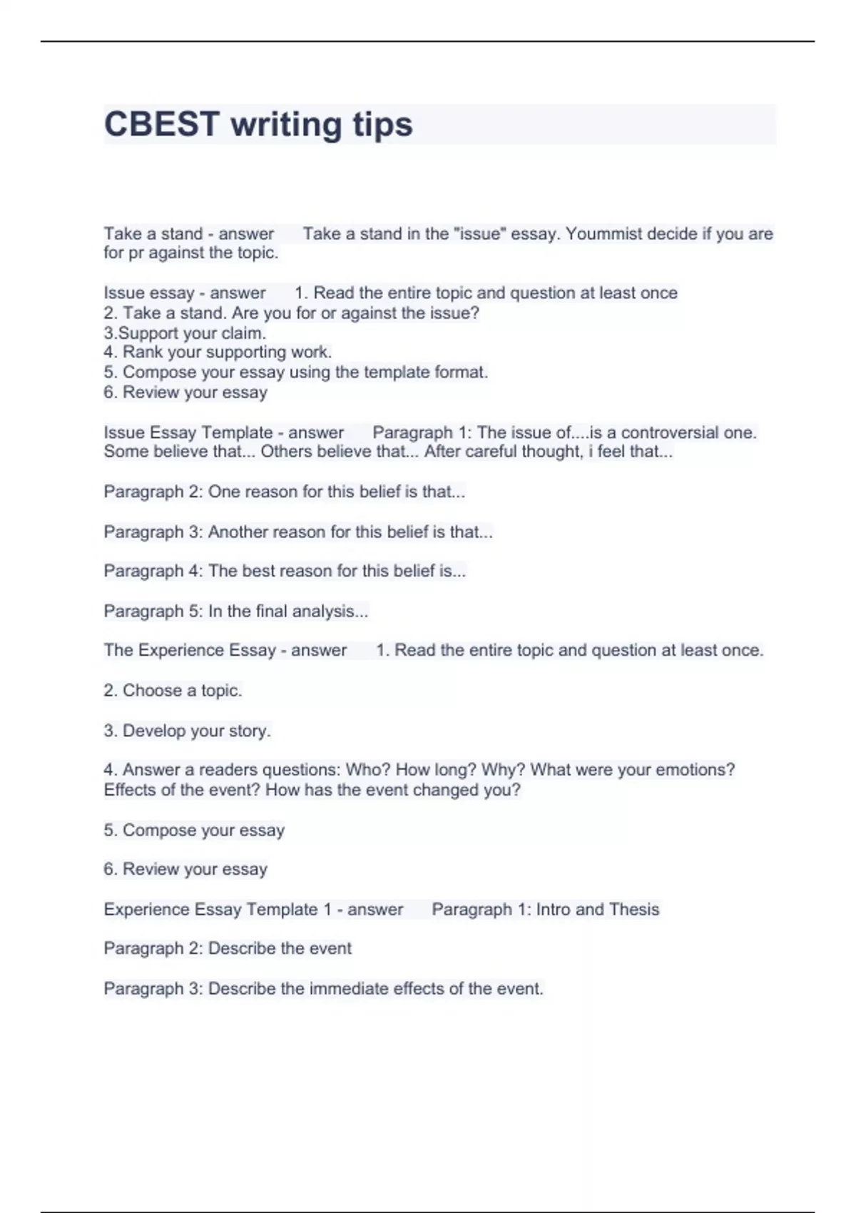 Exam of 2 pages for the course CBEST at CBEST (CBEST writing tips)