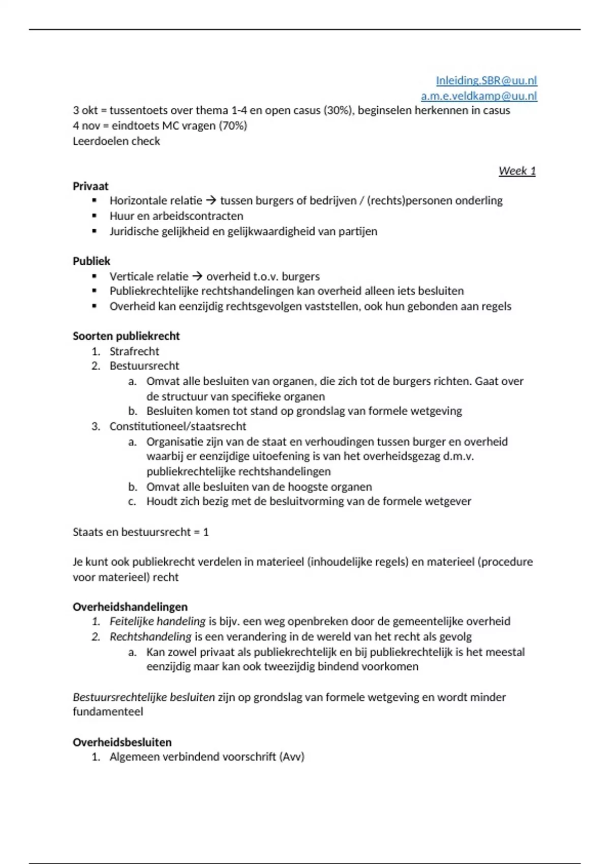 3 okt = tussentoets over thema 1-4 en open casus (30%), beginselen herkennen in casus