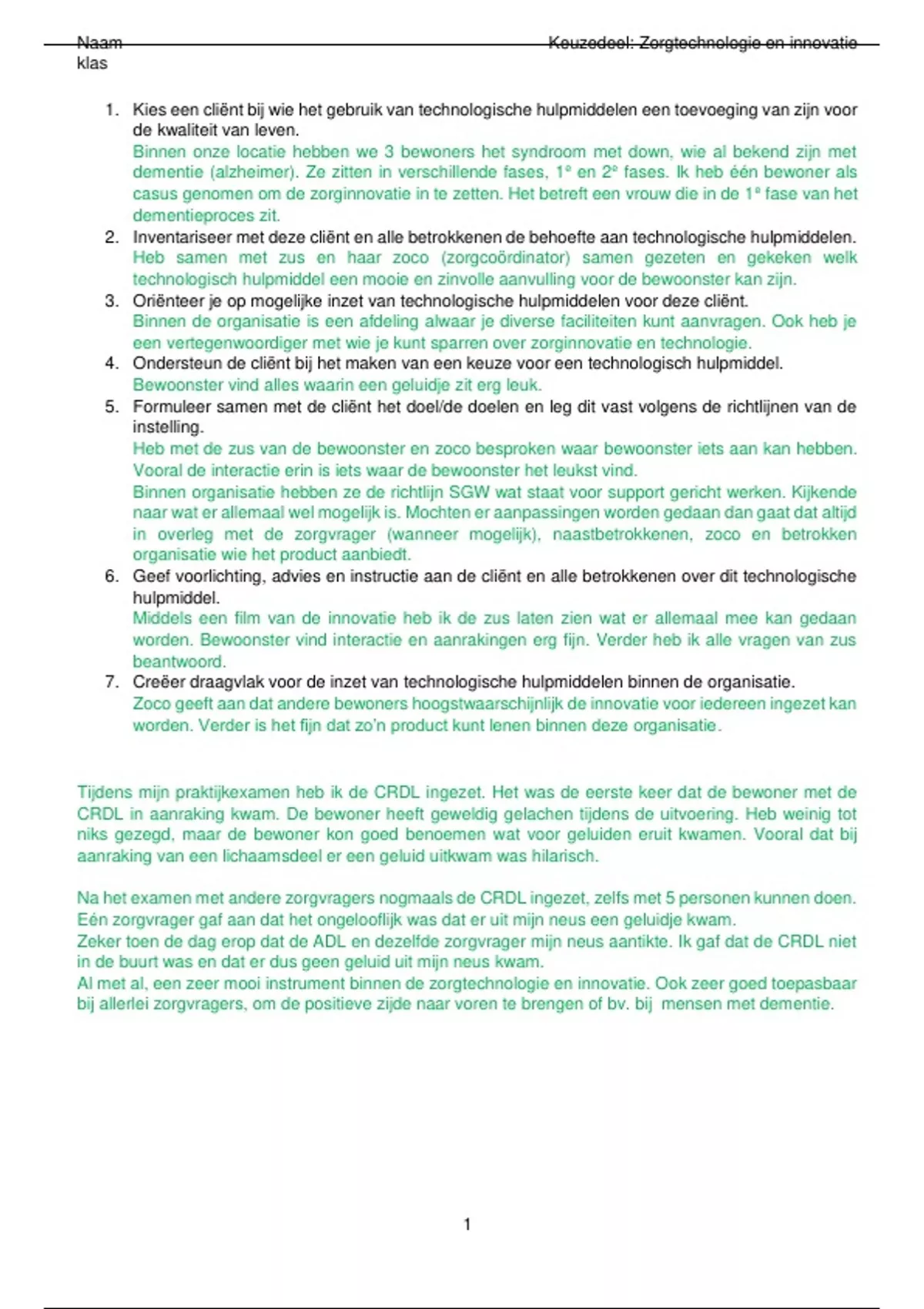Tijdens mijn verpleegkundige opleiding het keuzedeel zorgtechnologie en innovatie gedaan. Hierin zat de opdracht de 7 punten. Ik heb het instrument CRDL uitgetest.