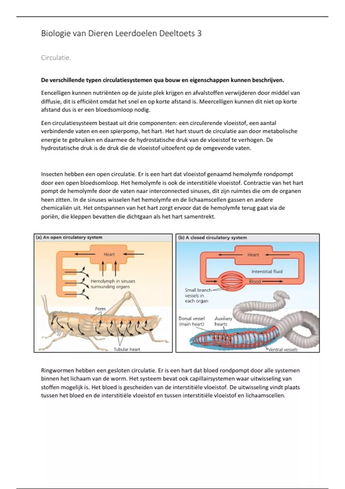 door een open bloedsomloop. Het hemolymfe is ook de interstitiële vloeistof. Contractie van het hart