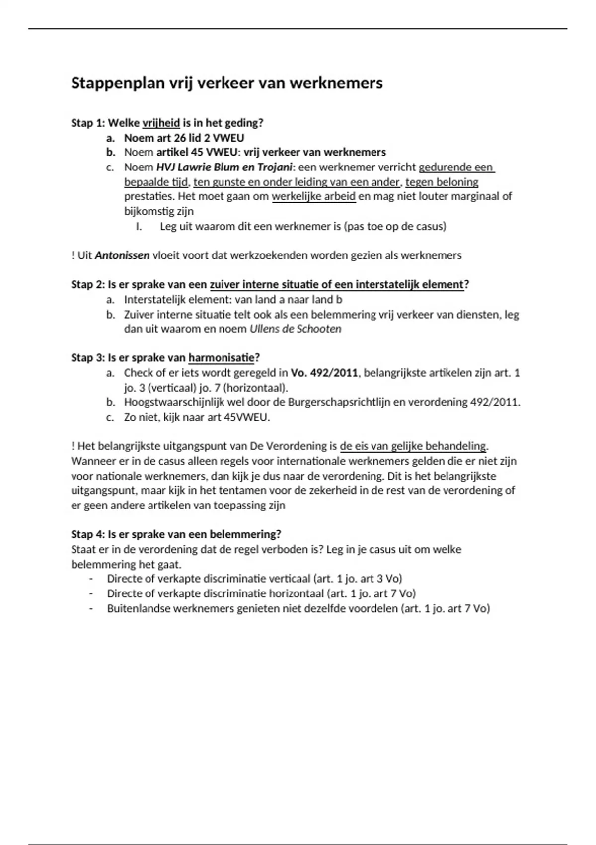 b. Noem artikel 45 VWEU: vrij verkeer van werknemers