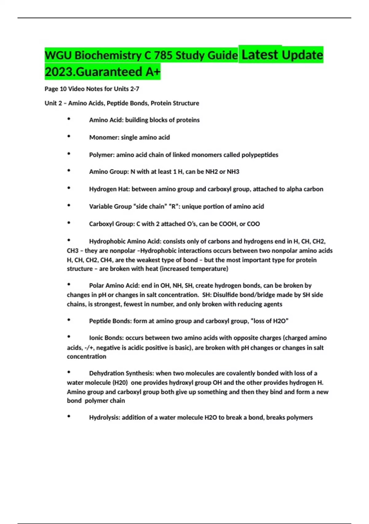 WGU Biochemistry C 785 Study Guide Latest Update 2023.Guaranteed A+.