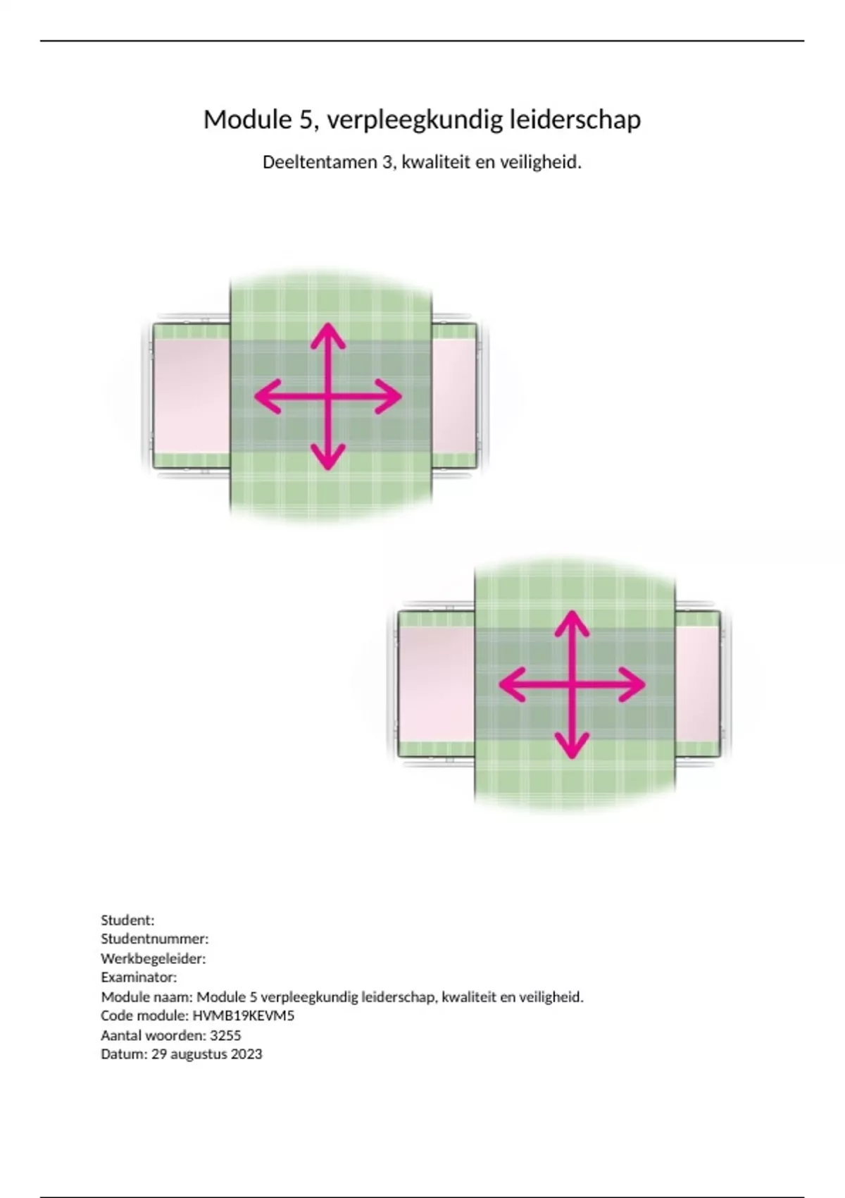 Module naam: Module 5 verpleegkundig leiderschap, kwaliteit en veiligheid.