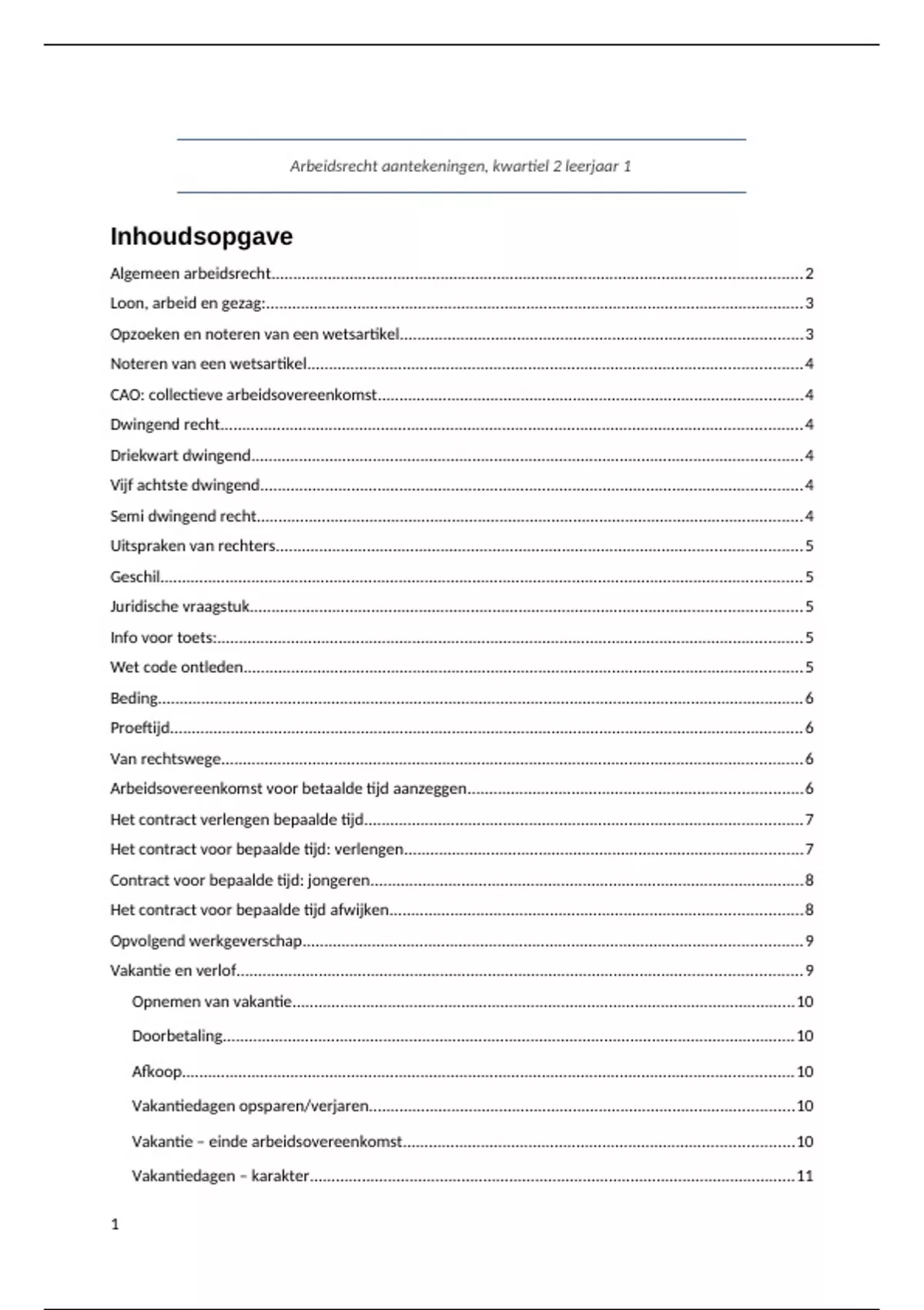 Arbeidsrecht aantekeningen, kwartiel 2 leerjaar 1