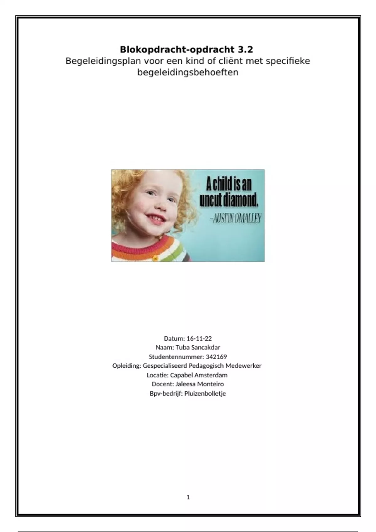 Blokopdracht 3.2 Begeleidingsplan voor een kind of cliënt met specifieke begeleidingsbehoeften