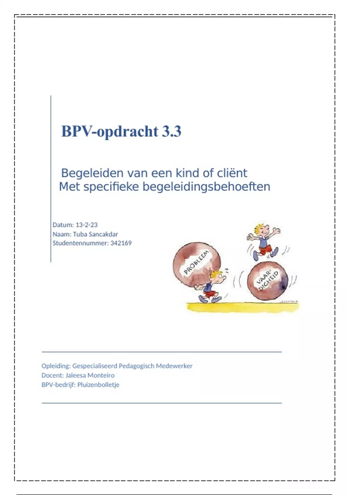 opvang zit. Vandaar heb ik voor deze opdracht een nieuw plan gemaakt voor een ander kind.