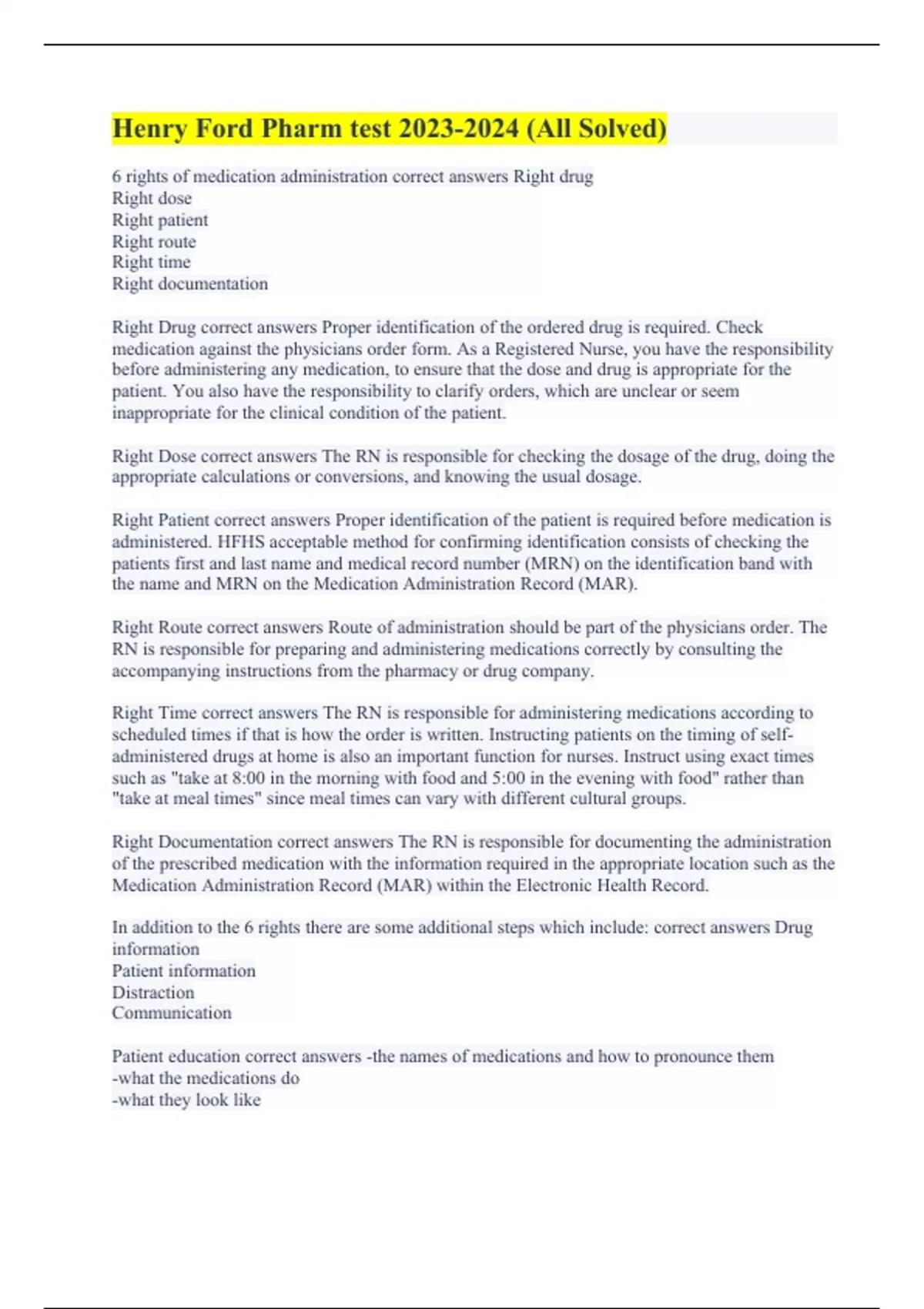 In addition to the 6 rights there are some additional steps which include: correct answers Drug information