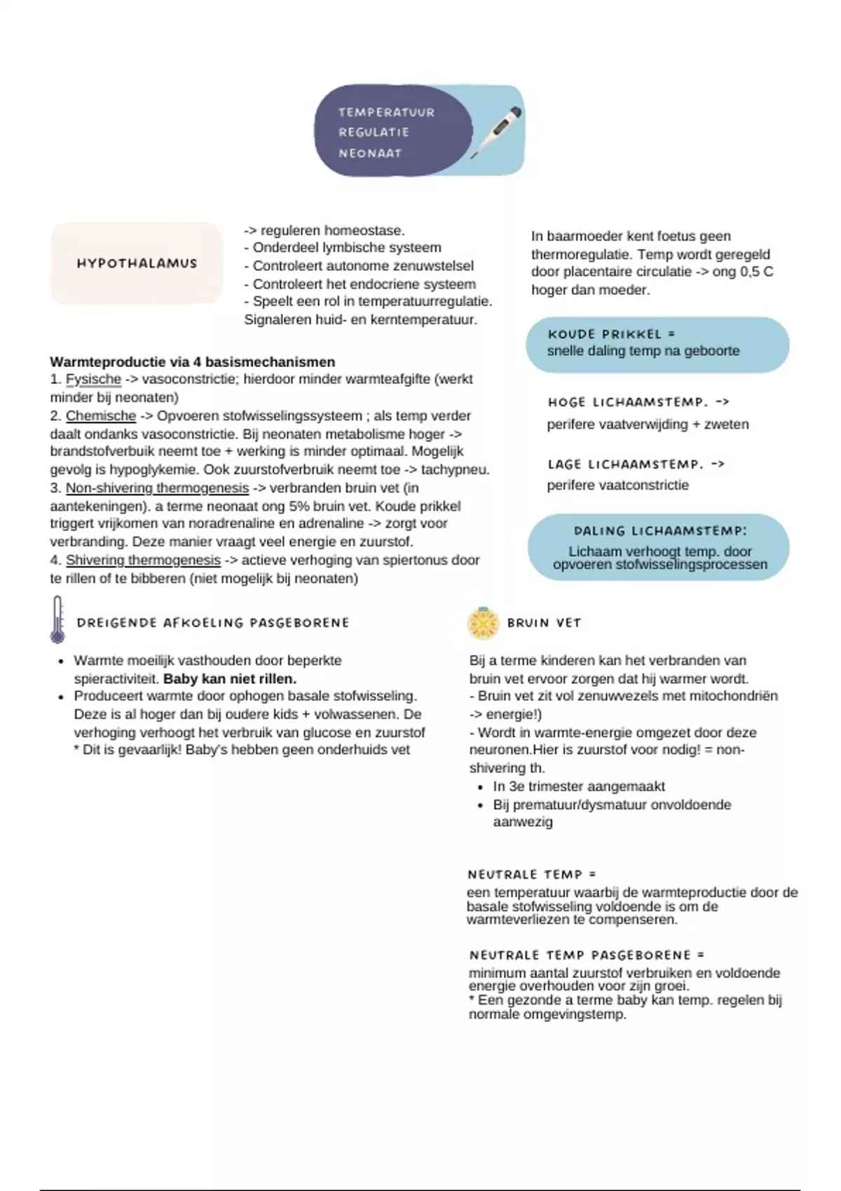 Samenvatting Temp. regulatie en ABCDE pasgeborene