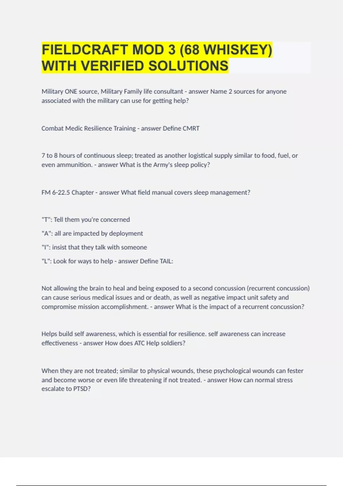 FIELDCRAFT MOD 3 (68 WHISKEY) WITH VERIFIED SOLUTIONS.