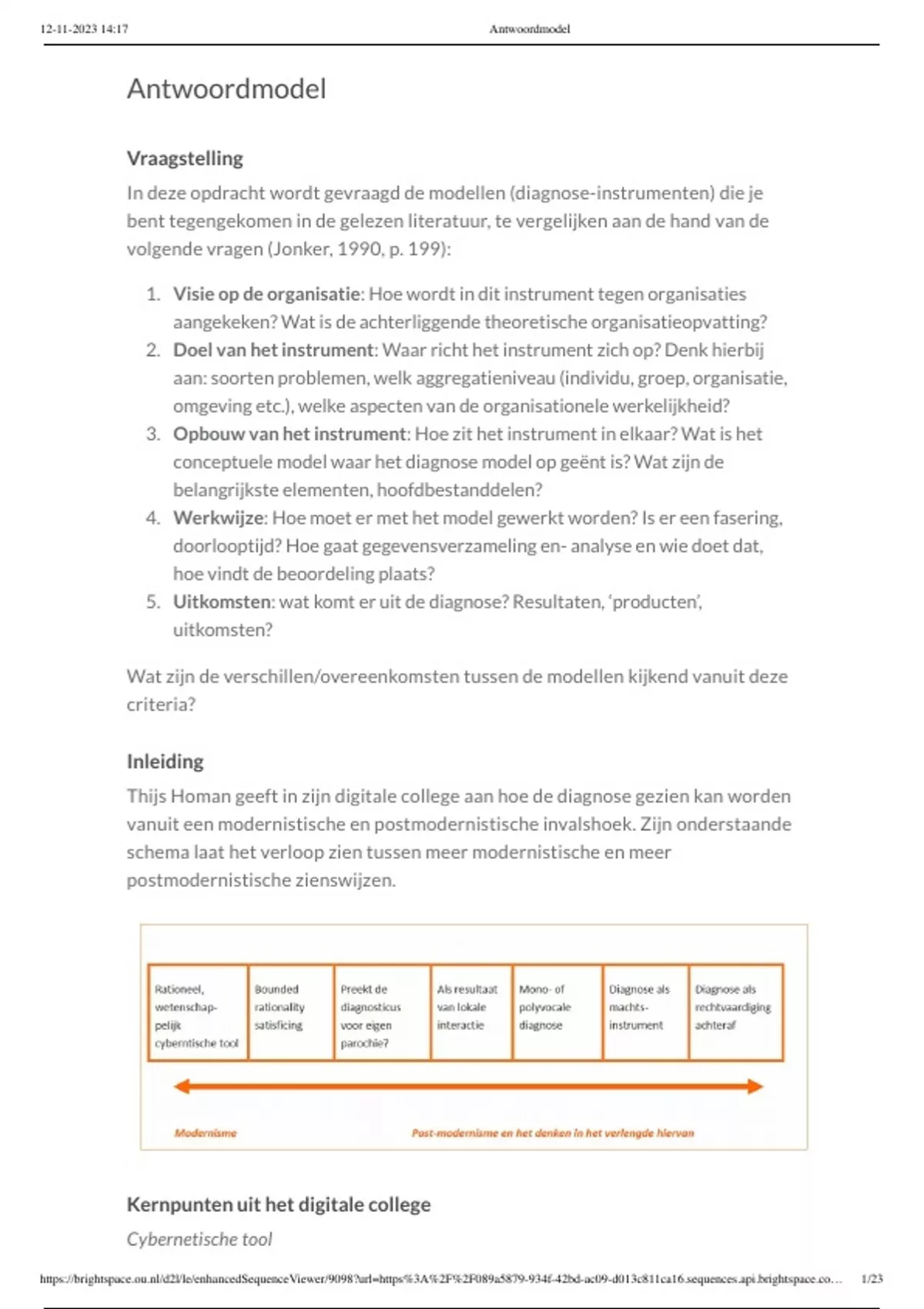 Originele antwoordmodel Studietaak 4 - Organisatiediagnose, diagnosemodellen