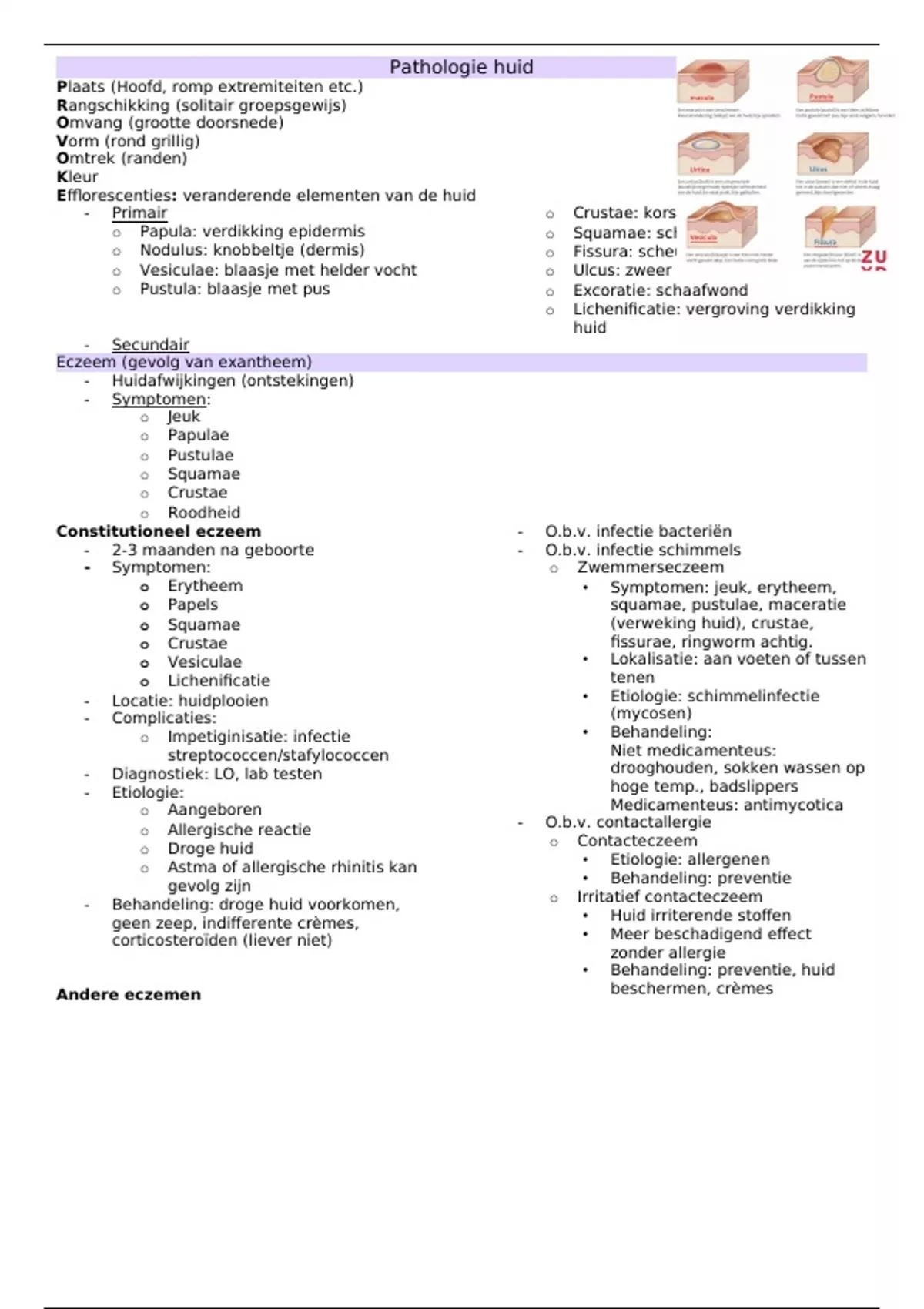 Samenvatting Pathologie: Aandoeningen van de Huid