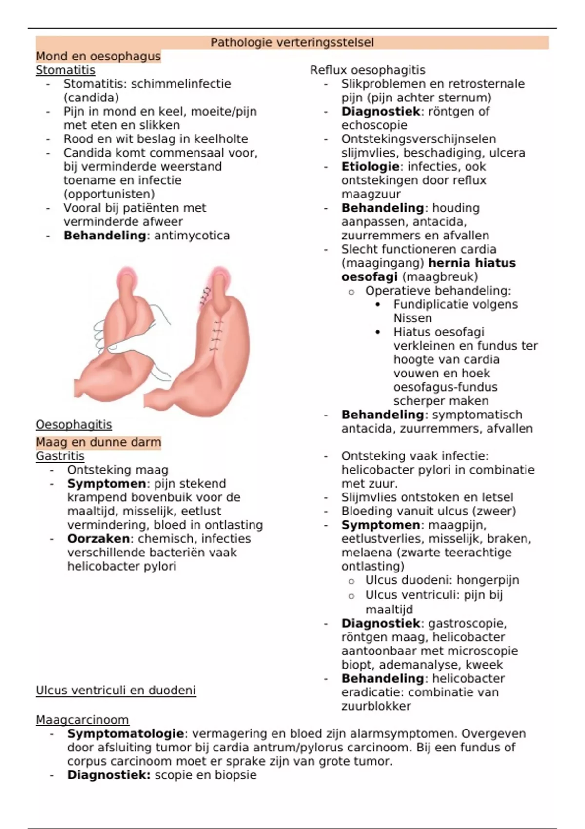 Samenvatting Pathologie: Aandoeningen van het spijsverteringsstelsel