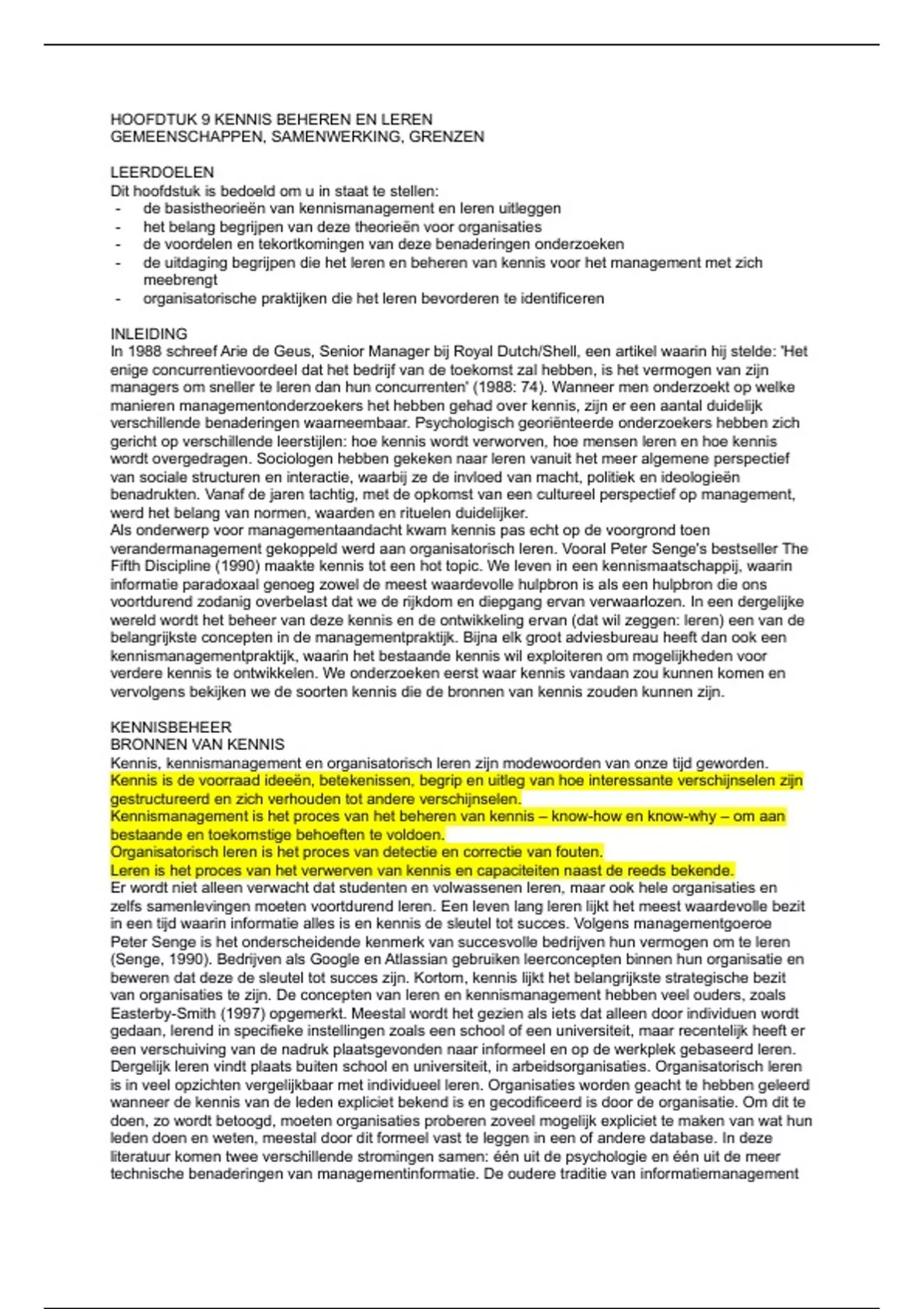 HOOFDTUK 9 KENNIS BEHEREN EN LEREN