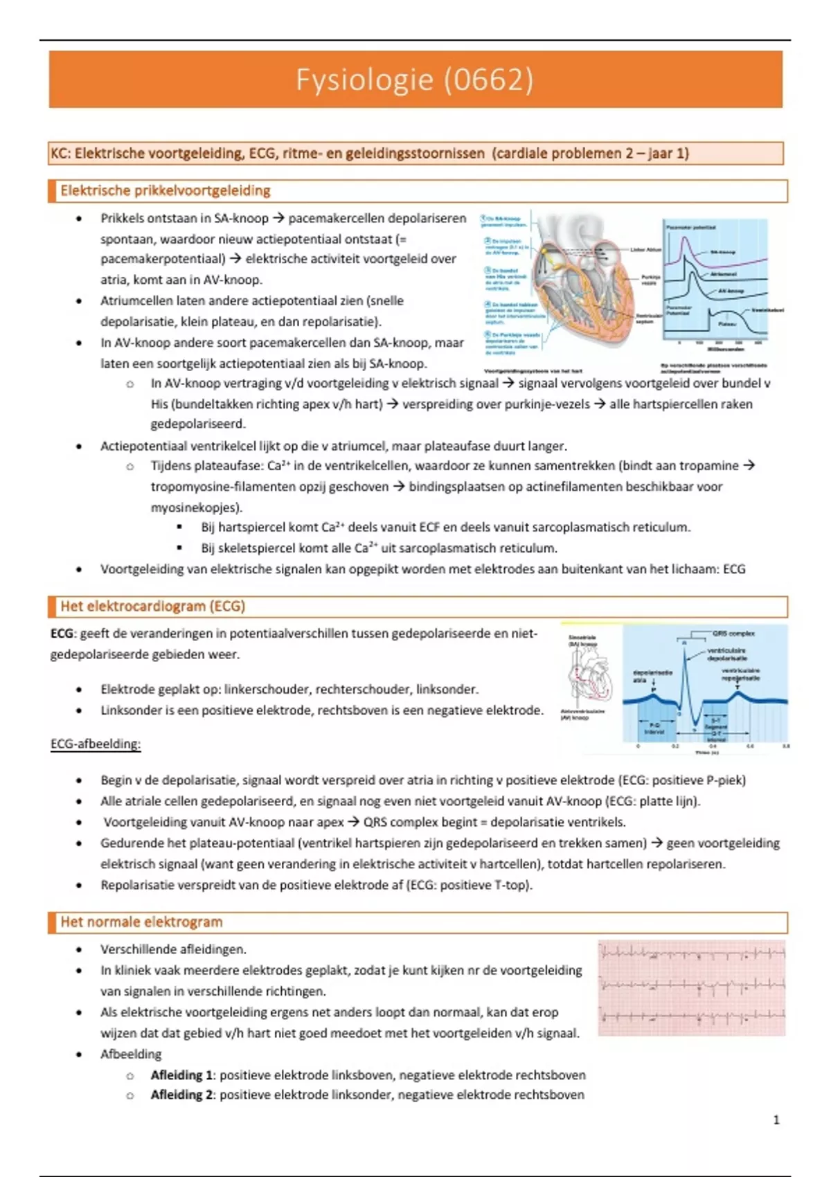 KC: Elektrische voortgeleiding, ECG, ritme- en geleidingsstoornissen (cardiale problemen 2 – jaar 1)