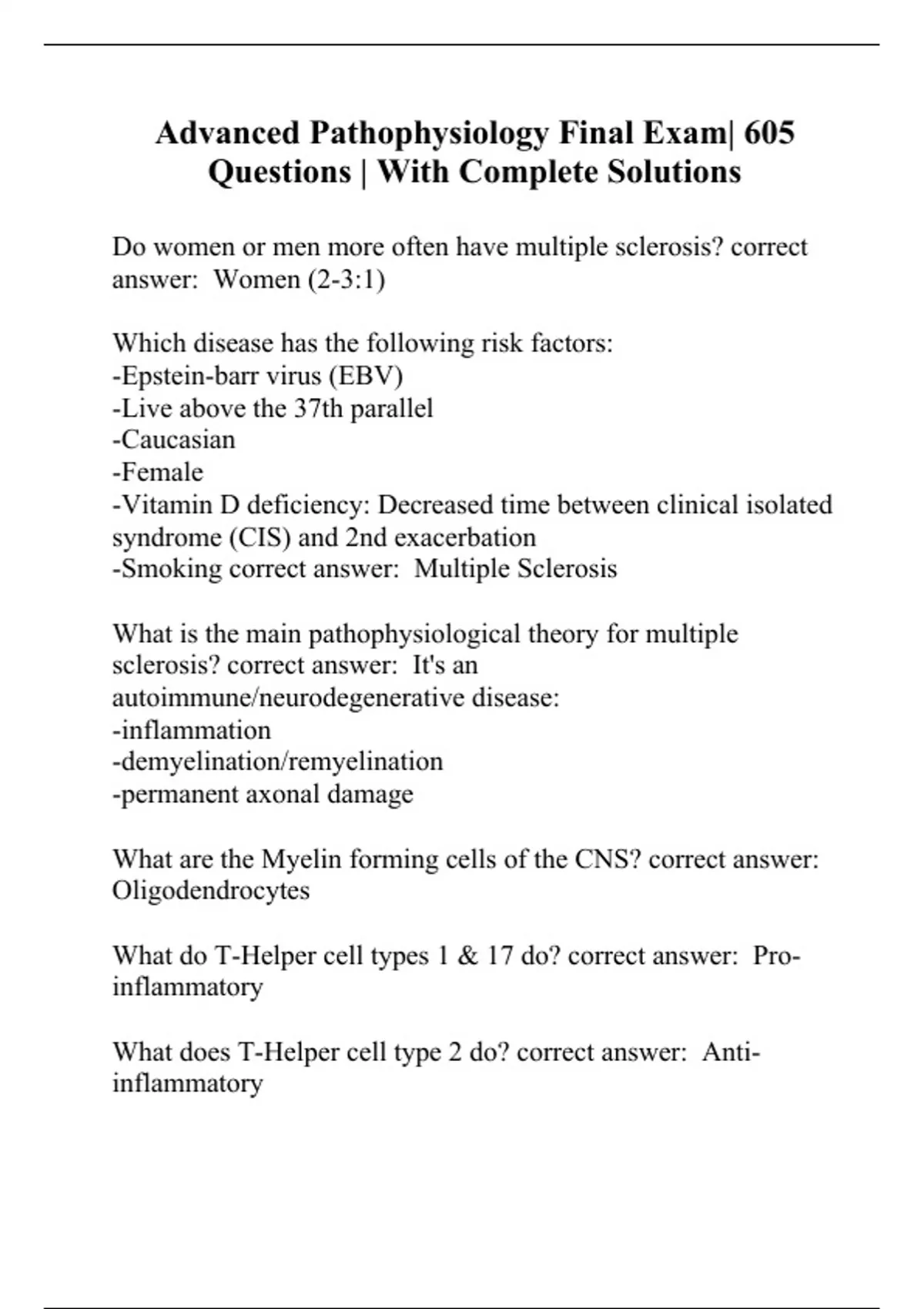 Advanced Pathophysiology Final Exam| 605 Questions | With Complete Solutions