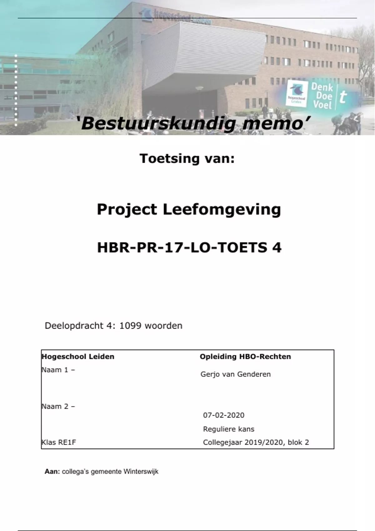 Aan: collega’s gemeente Winterswijk