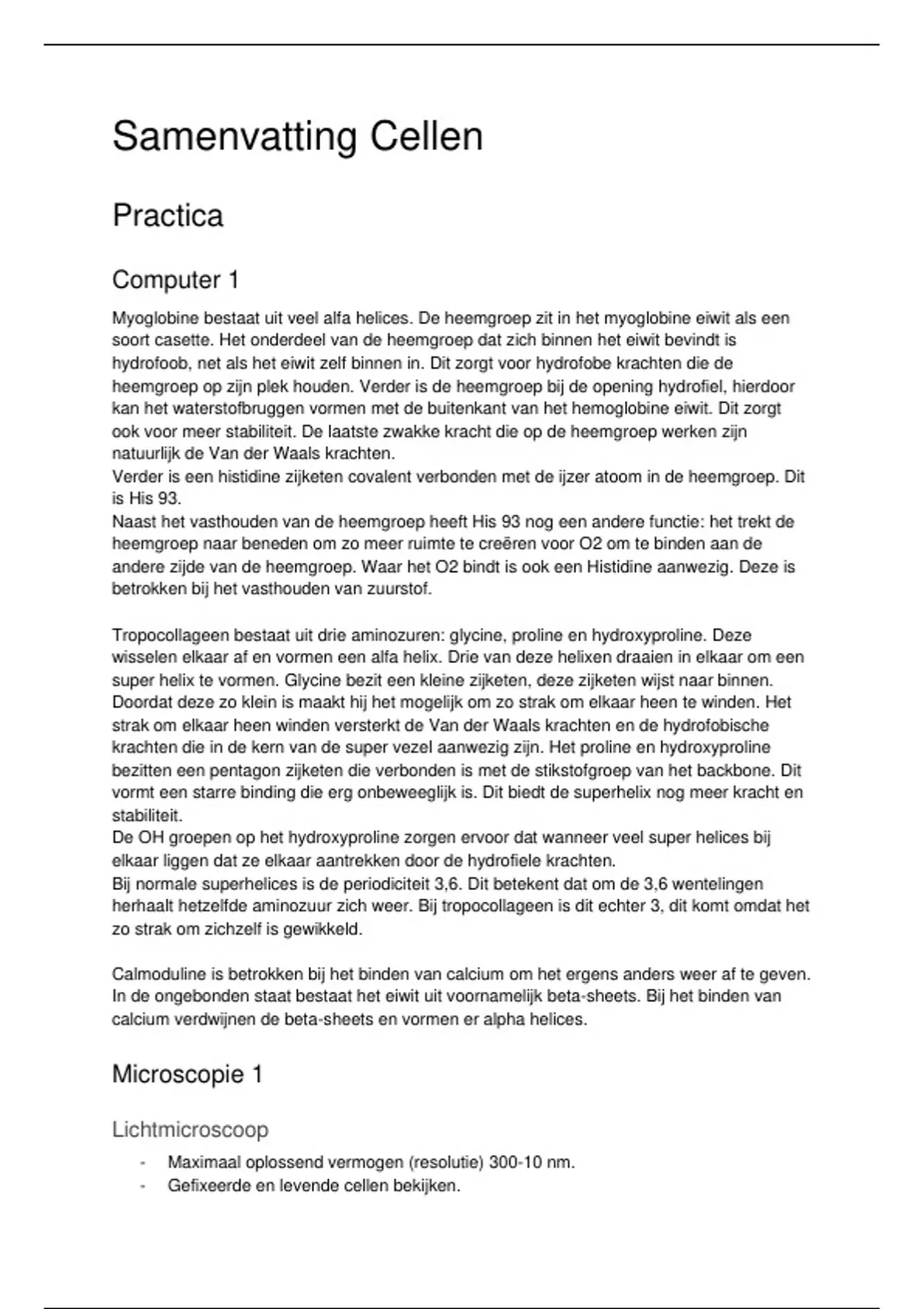 Samenvatting Cellen