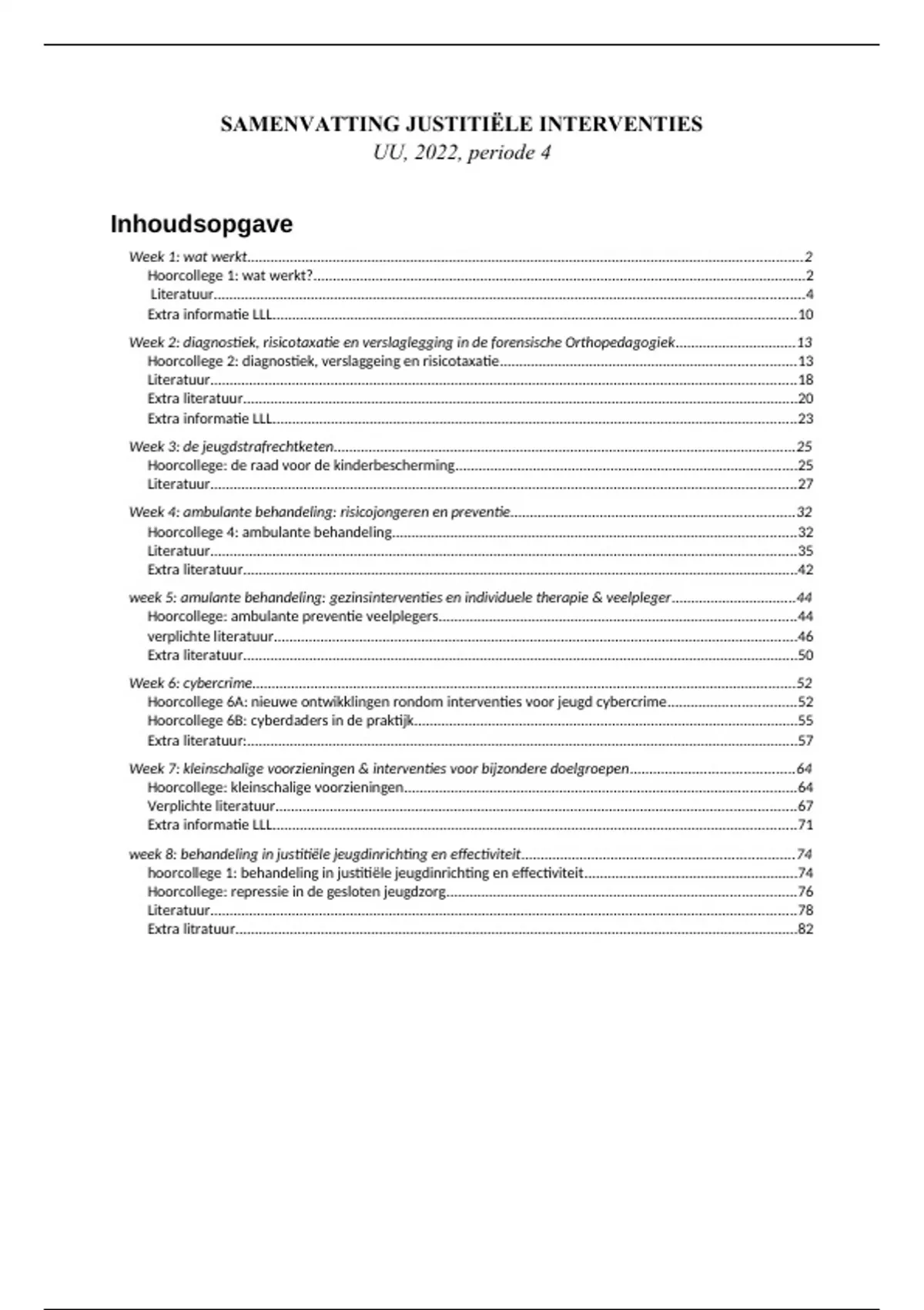 week 8: behandeling in justitiële jeugdinrichting en effectiviteit......................................................................74