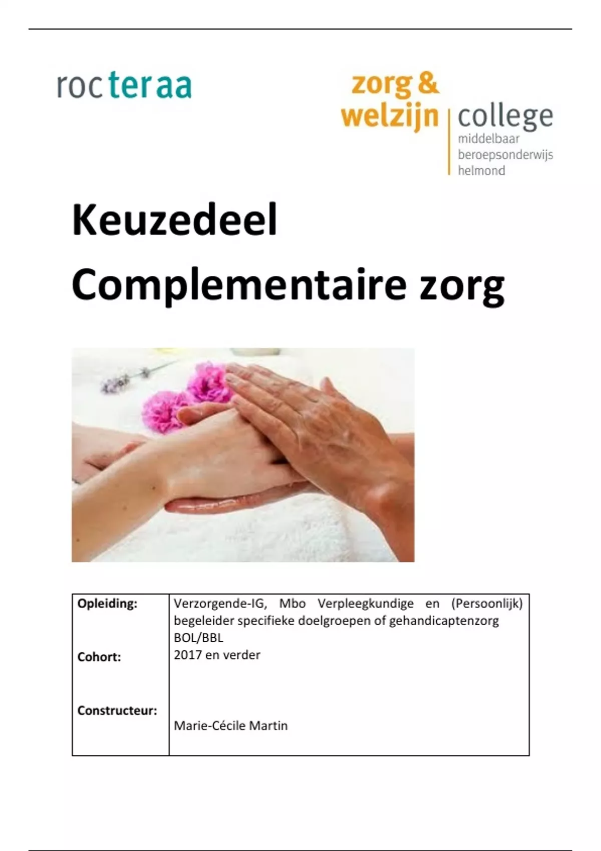 In dit keuzedeel komt het bieden van complementaire (aanvullende) zorg aan bod. De