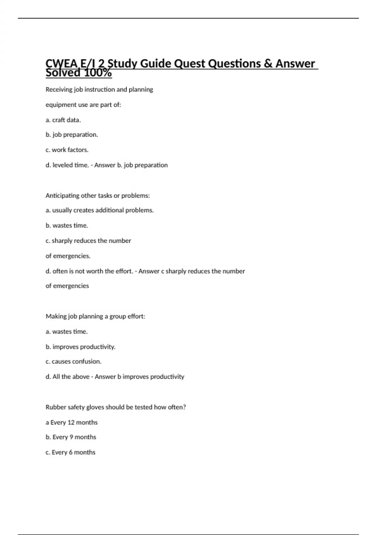 CWEA E/I 2 Study Guide Quest Questions & Answer Solved 100%