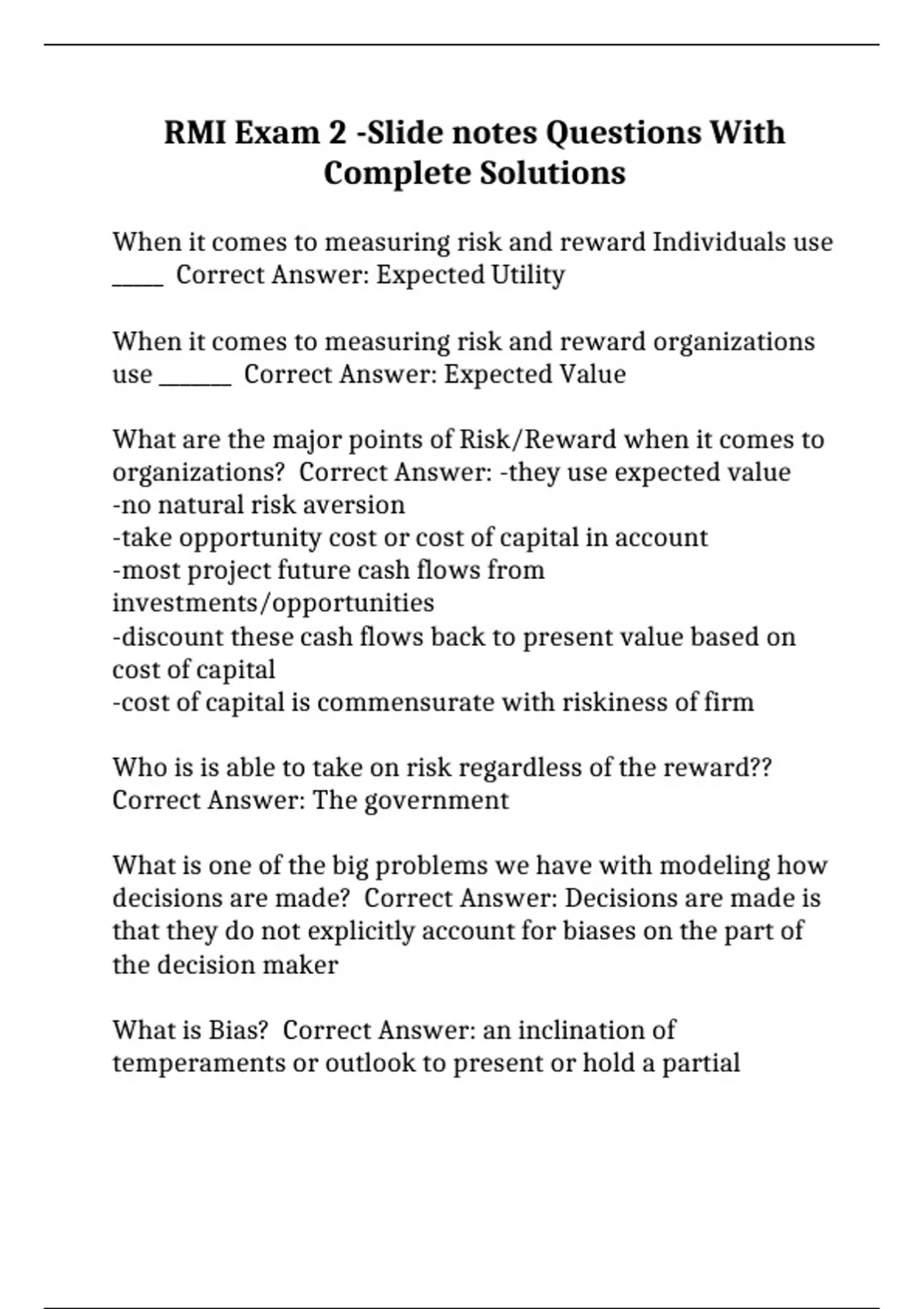 RMI Exam 2 -Slide notes Questions With Complete Solutions