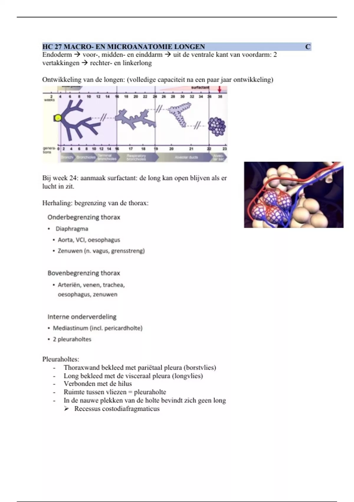 Bij week 24: aanmaak surfactant: de long kan open blijven als er