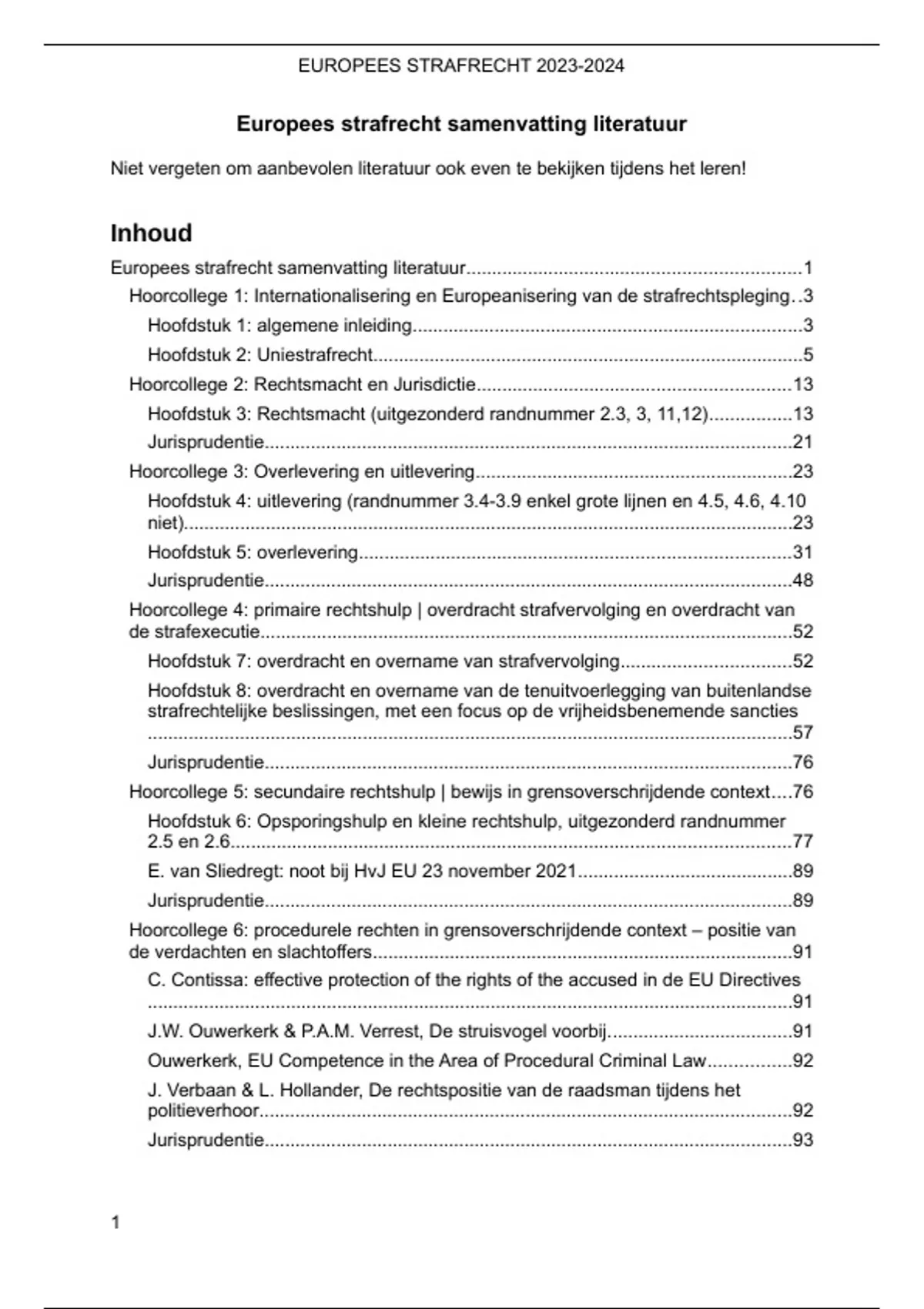 Samenvatting van de verplichte literatuur van het van Europees Strafrecht - 670225-M-6