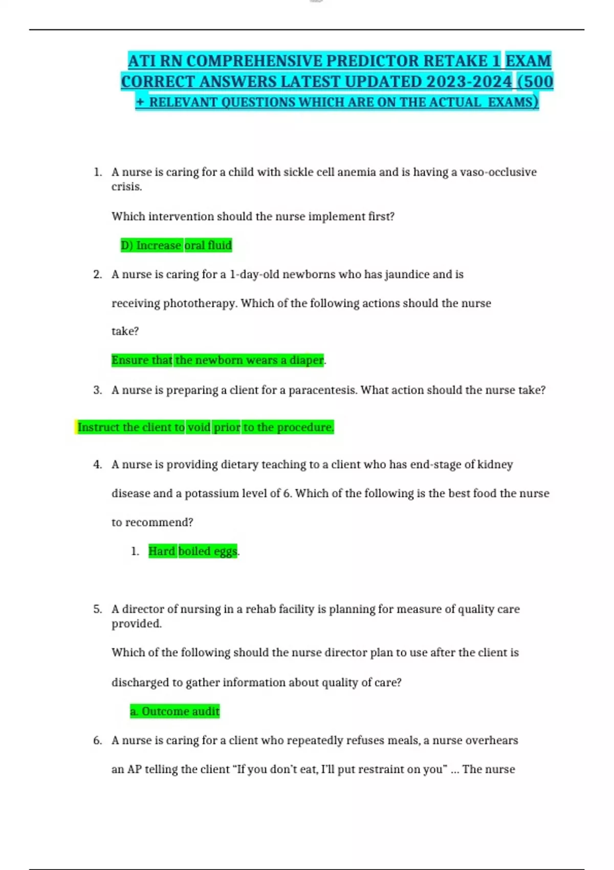 ATI RN COMPREHENSIVE PREDICTOR RETAKE EXAM WITH VERIFIED SOLUTIONS GRADED A+