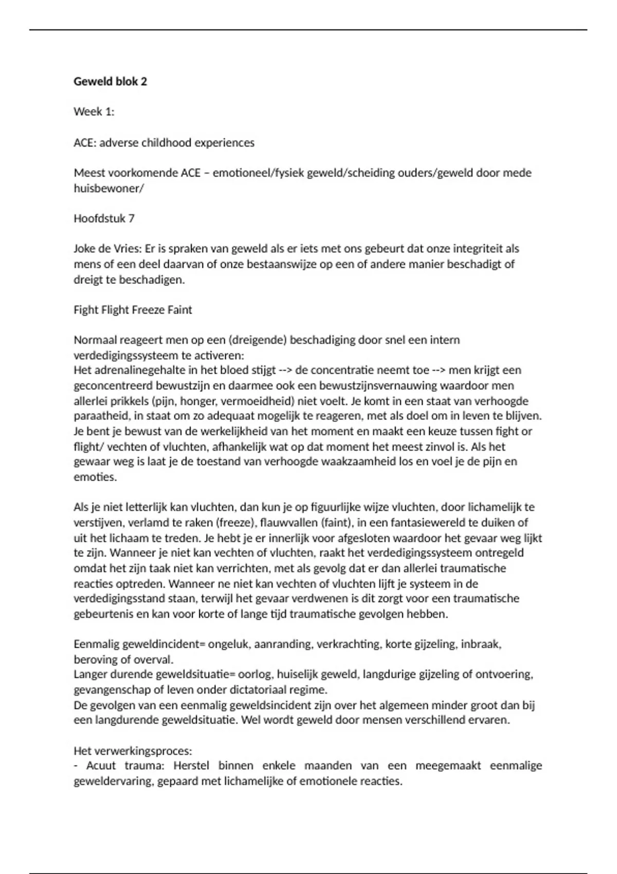 reageren (geen fight of flight). Hierdoor treden er traumatische reacties op die voor klachten