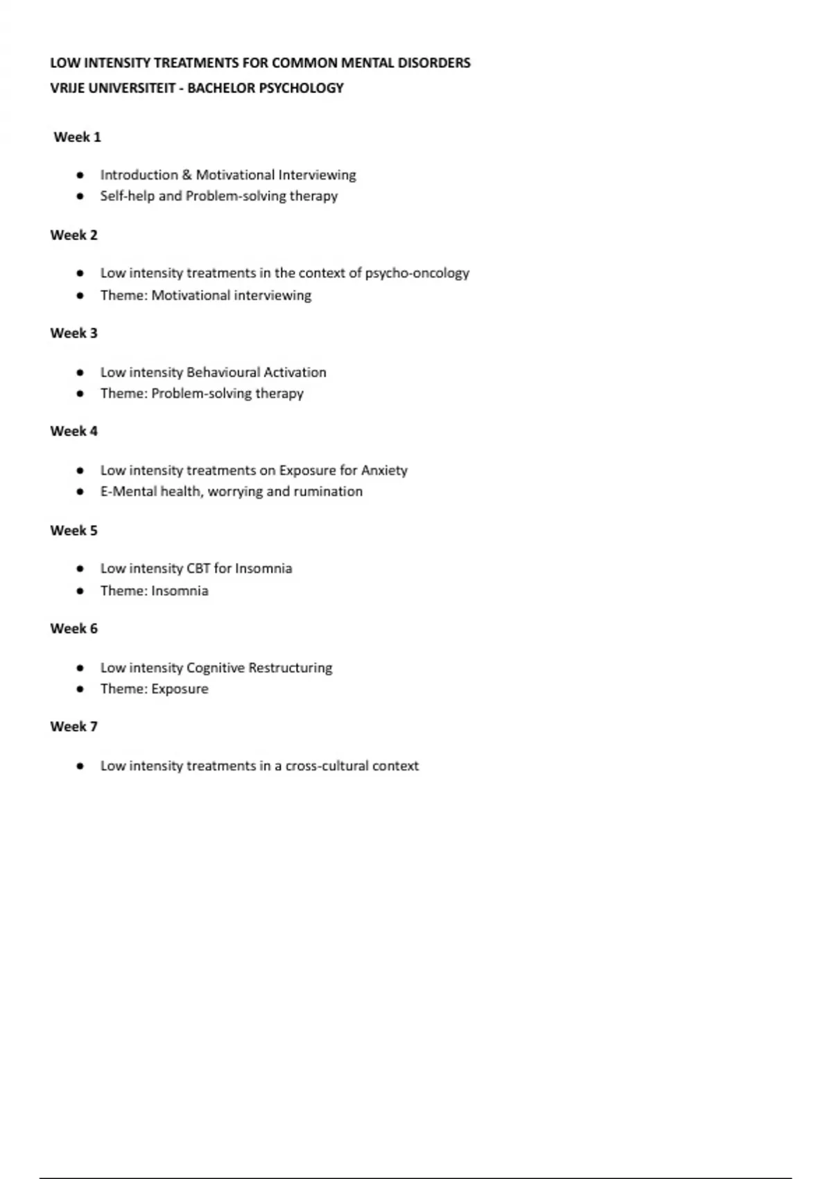 VRIJE UNIVERSITEIT - BACHELOR PSYCHOLOGY