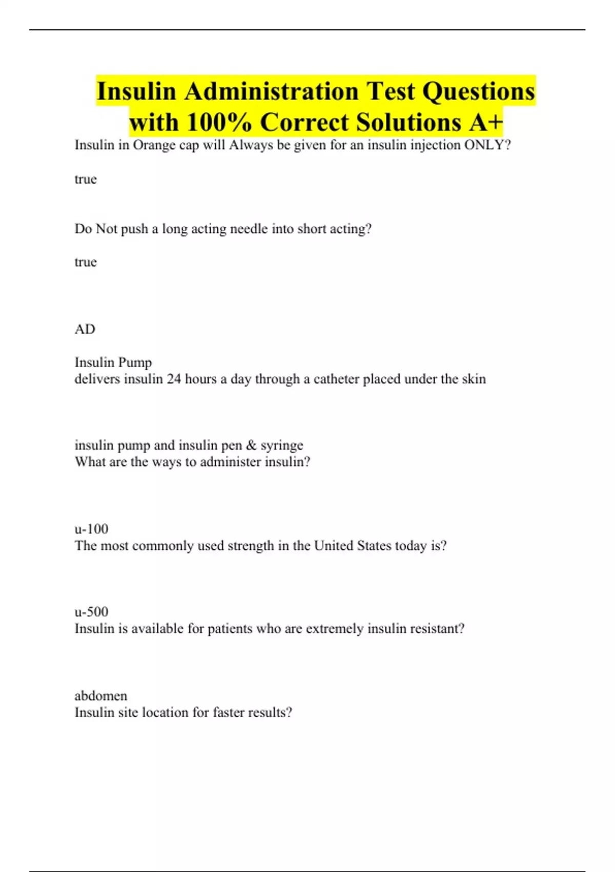 Insulin Administration Test Questions with 100% Correct Solutions A+
