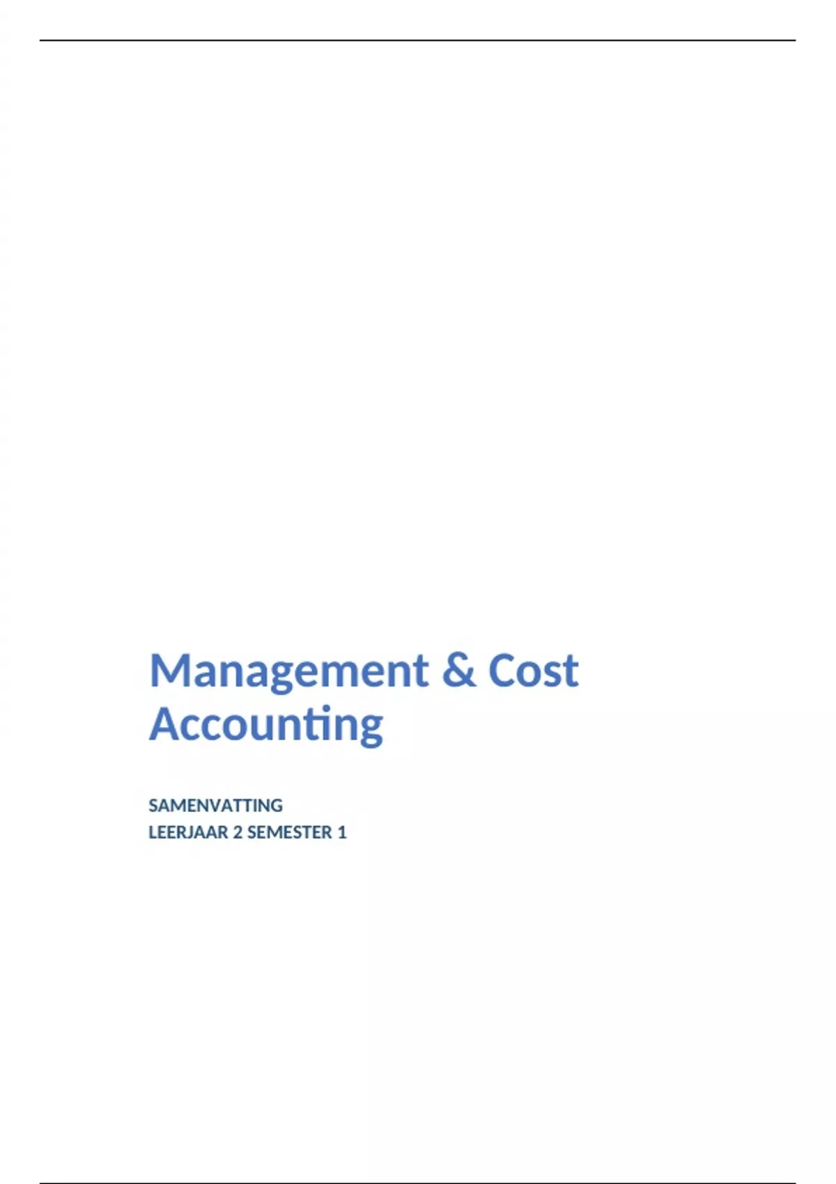 Opstellen van een integrale kostprijs (eventueel rekening houdend met afval en uitval) (Boek H2 en H4); Opstellen van een winstberekening volgens de absorption costing methode en direct costing methode (Boek H7) Opstellen van een kostenfunctie middels de hoog./ laag methode (Boek H5): Beslissingen aan de hand van een breakeven analyse (Boek H6) Beslissingen m.b.t. voorraadmanagement (Boek H12) Besturing middels divisiestructuren en transfer pricing (Boek H18)