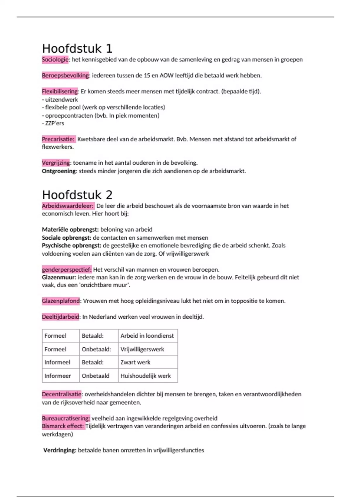 korte samenvatting arbeid, bedrijf en maatschappij