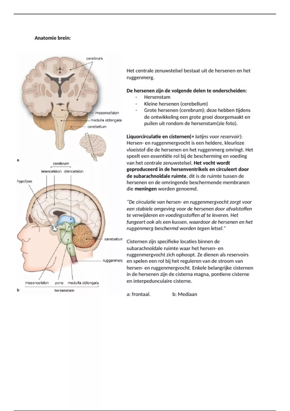 a: frontaal. b: Mediaan