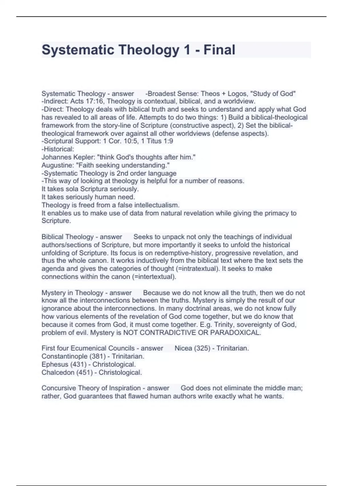 Systematic Theology 1 - Final Questions and Answers latest updated 2023