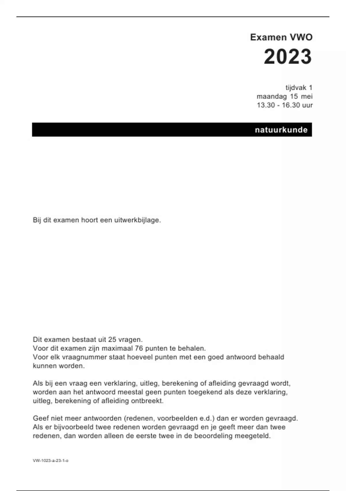 Examen Natuurkunde VWO 2023