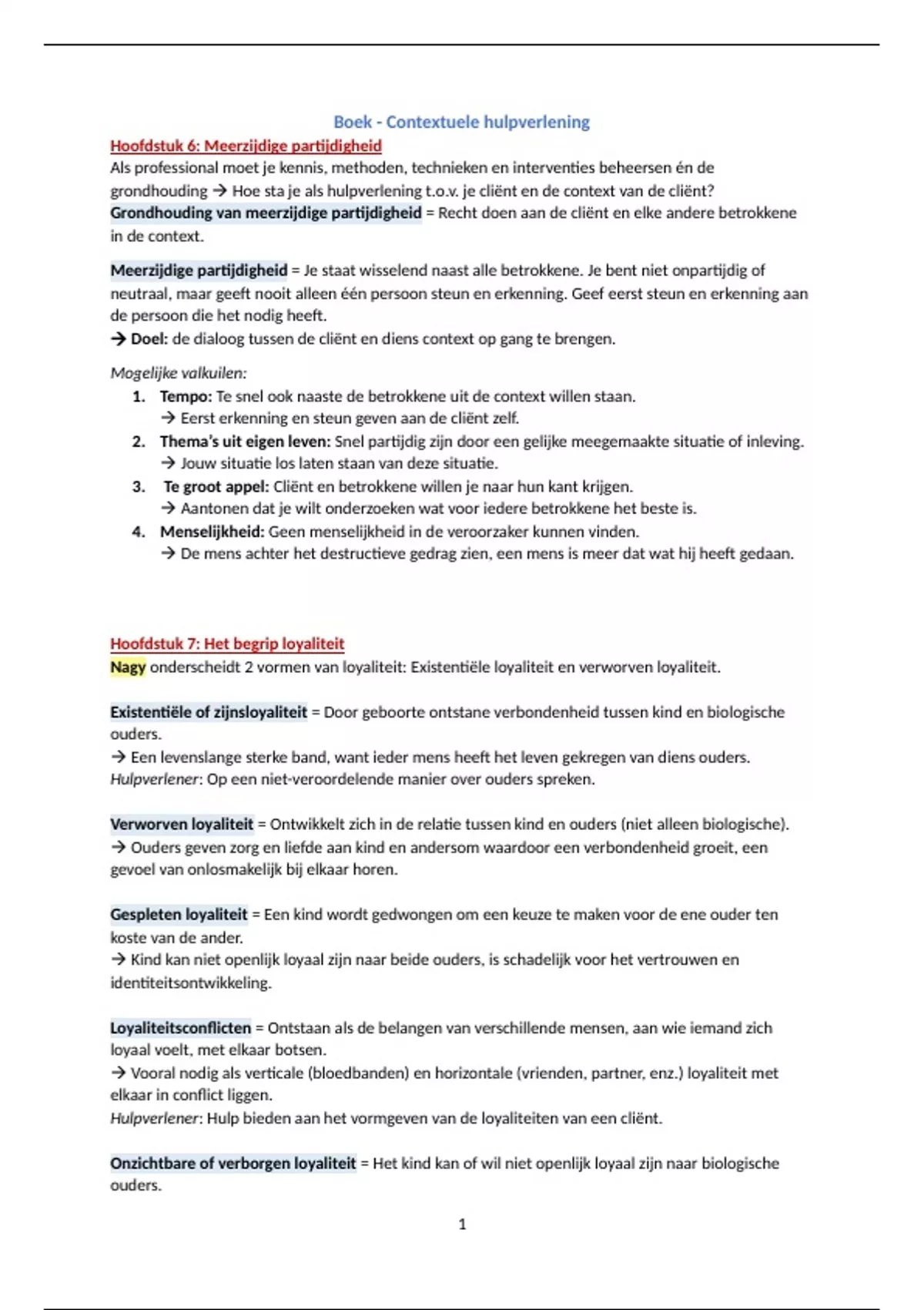 In dit document zijn de volgende boeken en hoofdstukken samengevat, die nodig zijn voor het tentamen 'Complexe Opvoedsituaties': - Contextuele hulpverlening: H6, 7 - Praktijkboek praten met kinderen over kindermishandeling: H1, 2 - Cliënt centraal in de jeugdhulp: H5 - 1 Gezin, 1 plan: H1, 2, 3, 4