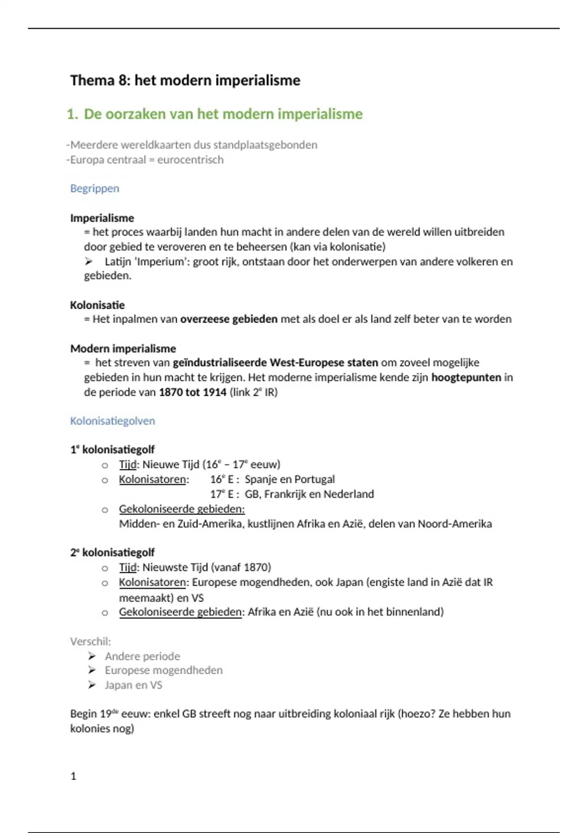 1. De oorzaken van het modern imperialisme