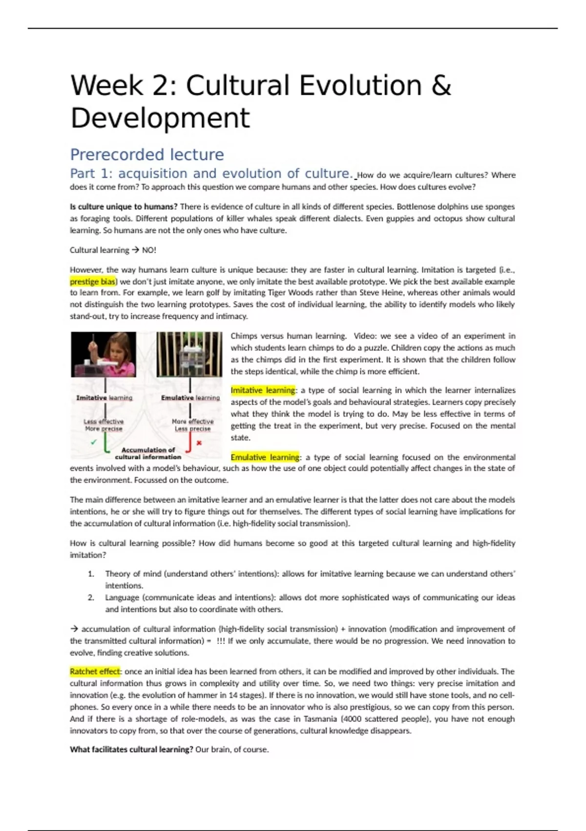 However, the way humans learn culture is unique because: they are faster in cultural learning. Imitation is targeted (i.e.,