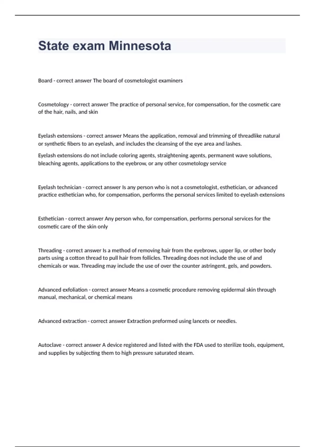 Electrical energy treatments - correct answer Advanced practice esthetic services for cosmetic care of the skin that use electrical energy as applied by skin care equipment used on the epidermal layer. Use light, direct current, indirect current, or sound energy, but do not include laser as identified in MN statutes