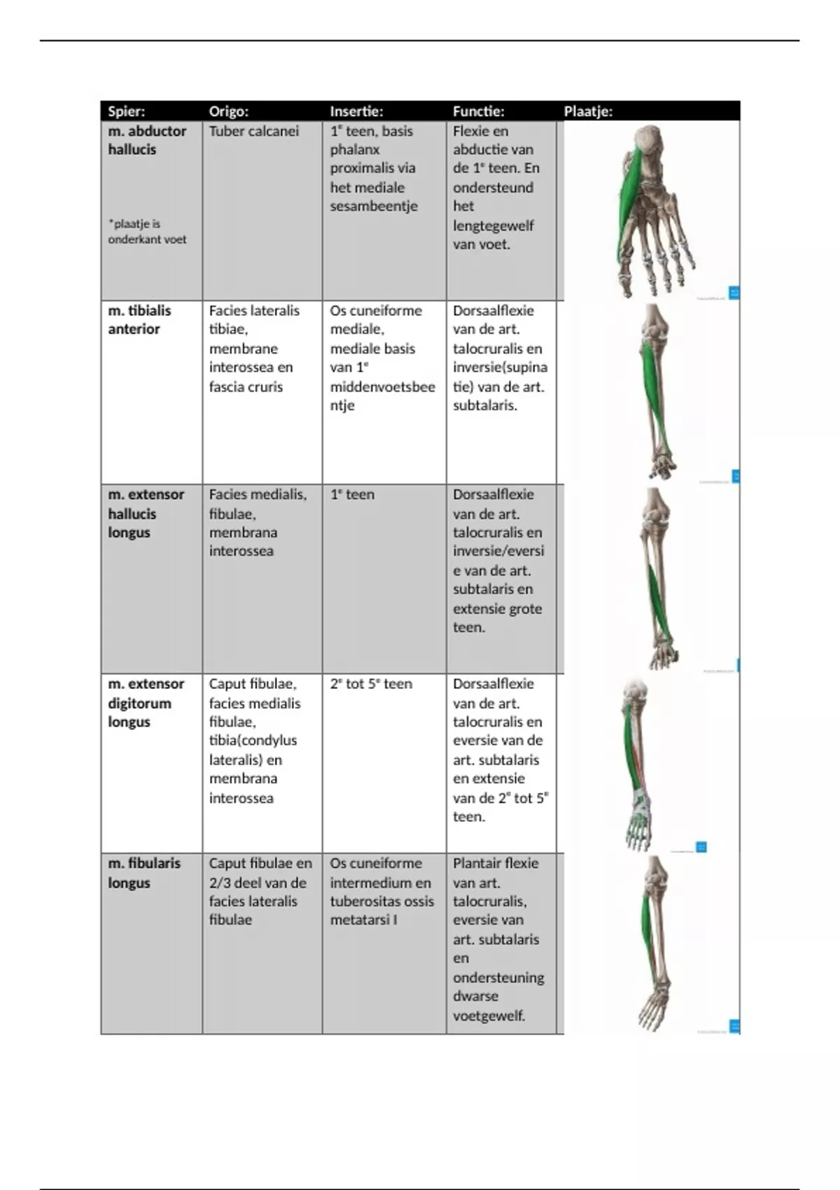 m. tibialis Facies lateralis Os cuneiforme Dorsaalflexie
