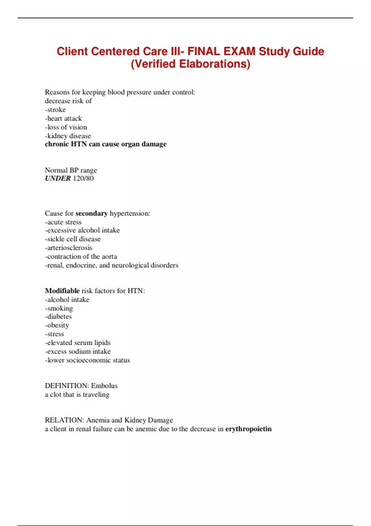 Client Centered Care III- FINAL EXAM Study Guide (Verified Elaborations)