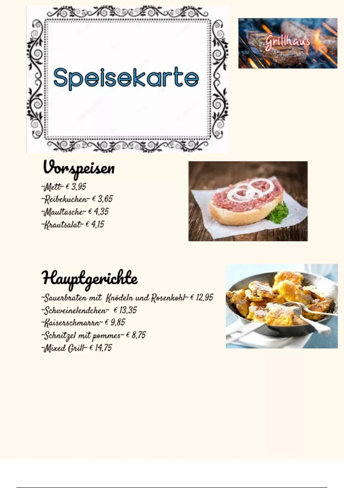 Dit is de menukaart die ik voor een praktische opdracht bij Duits in de tweede heb gemaakt.