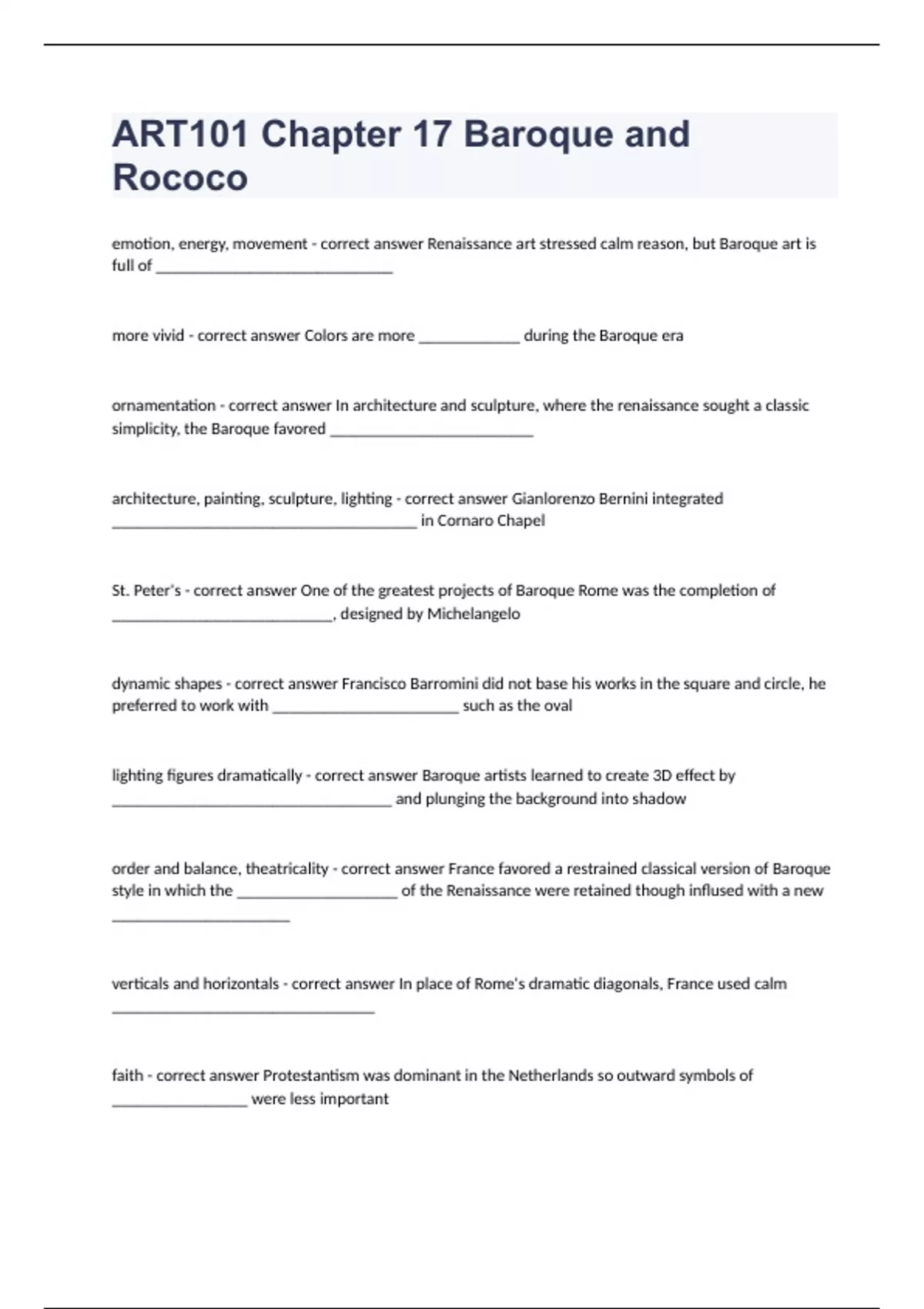 ART101 Chapter 17 Baroque and Rococo verified to pass 2023/2024