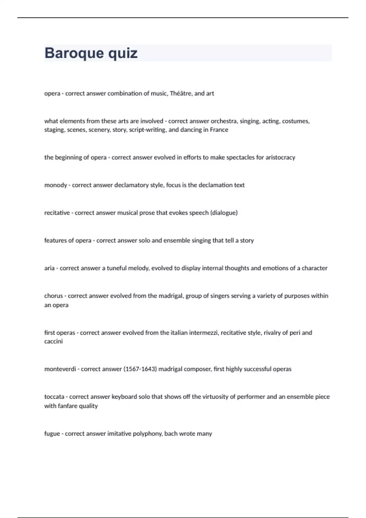 Baroque quiz questions with correct answers graded A= 2023/2024
