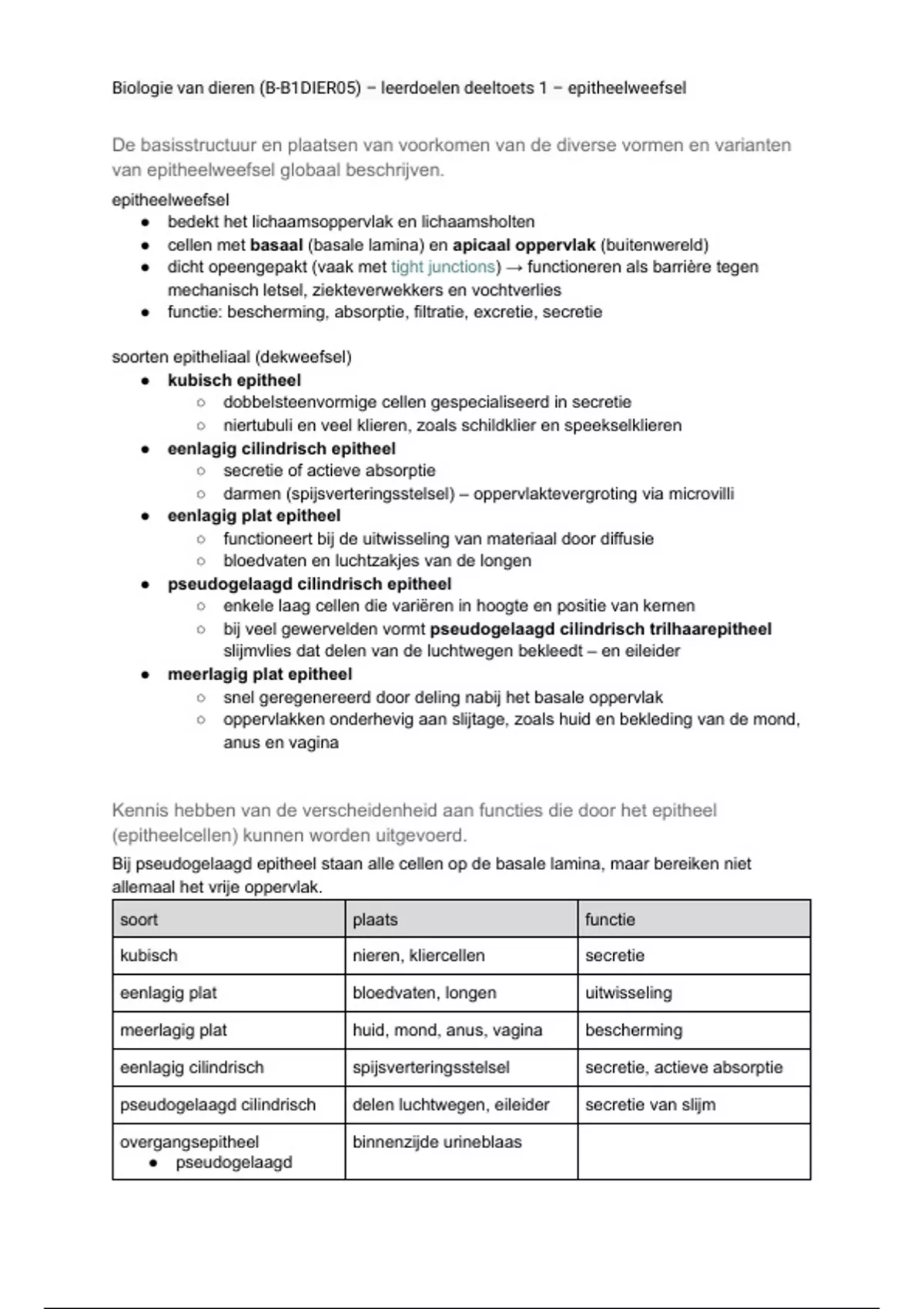 practicum epitheelweefsel