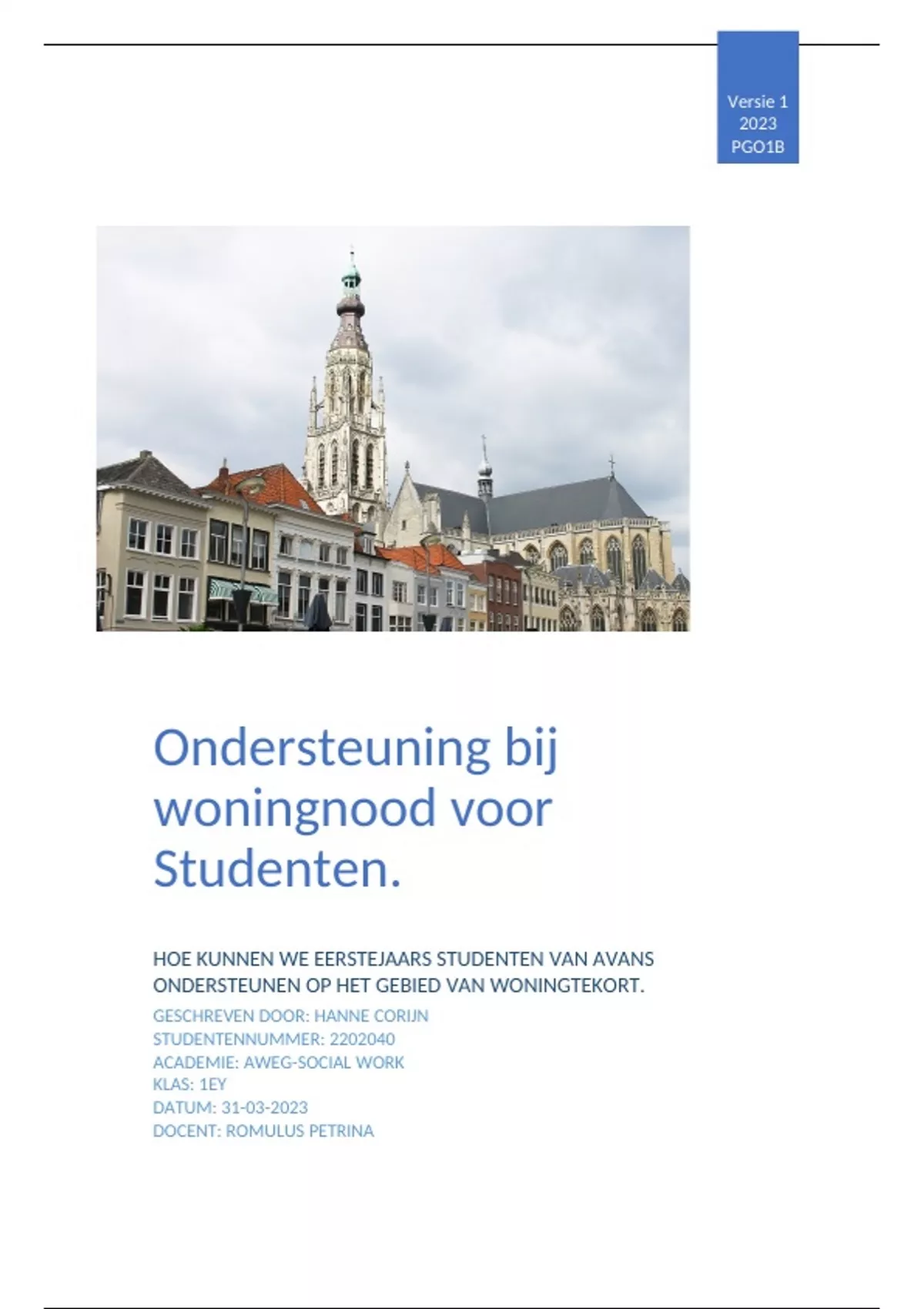 In dit onderzoek gaan we kijken naar het woningtekort in Breda bij eerstejaars studenten van Avans