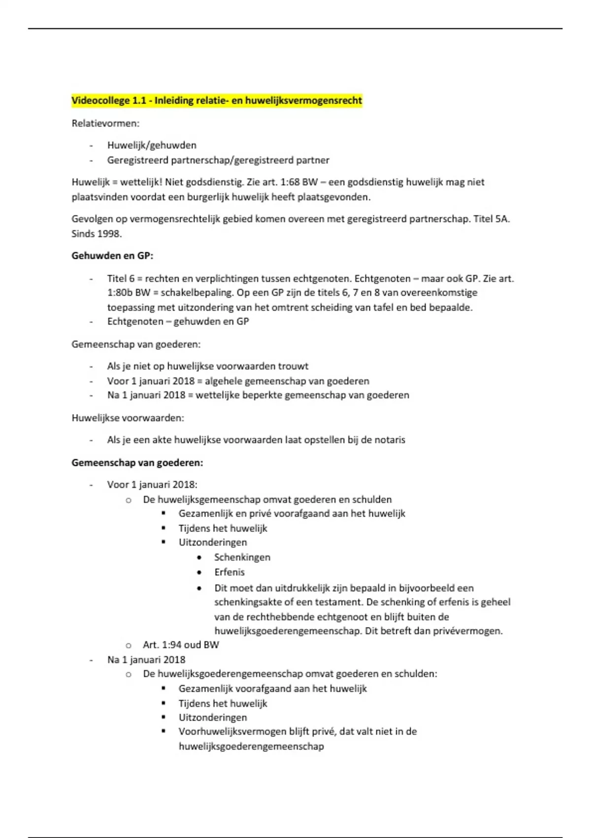 Videocollege 1.1 - Inleiding relatie- en huwelijksvermogensrecht