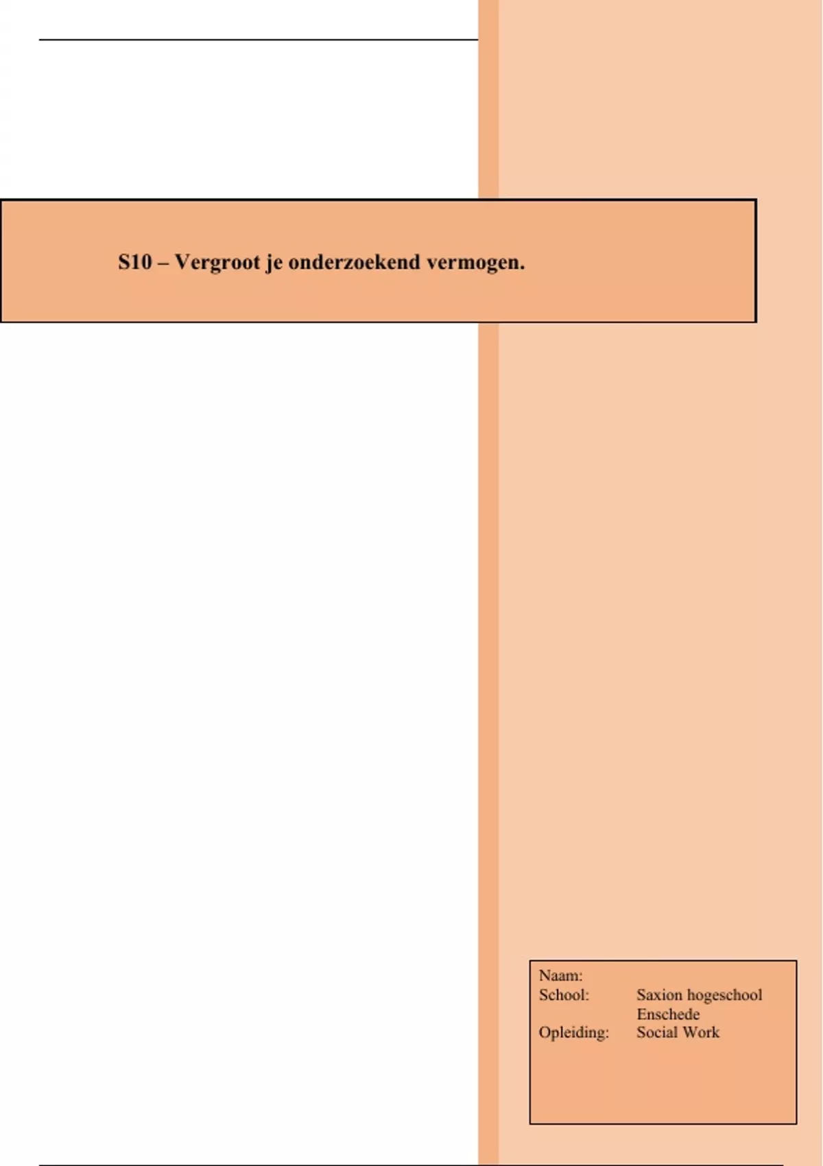 Voor u ligt mijn eindopdracht van het vak S10: Vergroot je onderzoekend vermogen