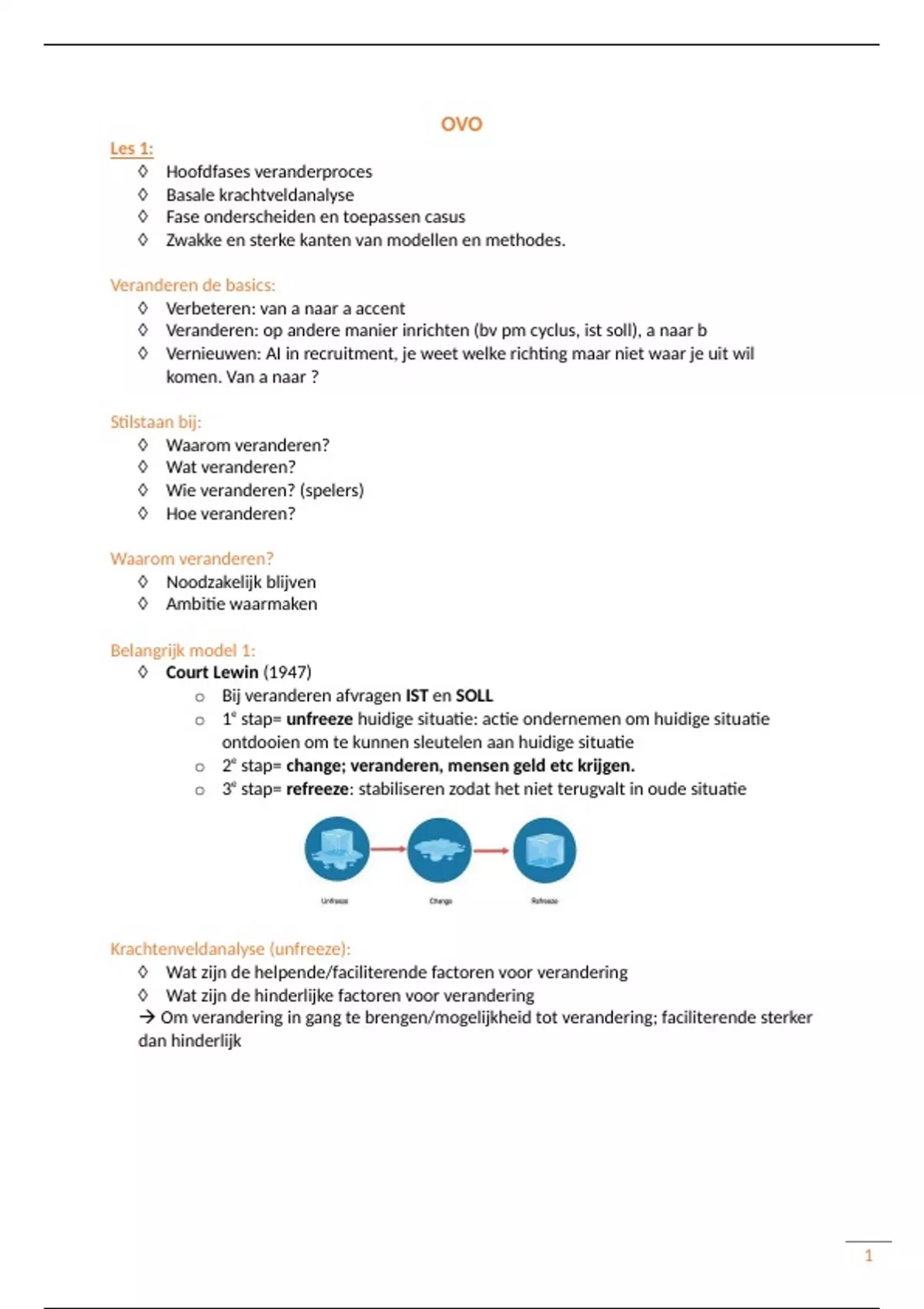 o 1e stap= unfreeze huidige situatie: actie ondernemen om huidige situatie